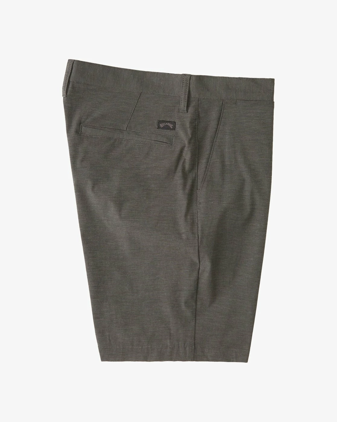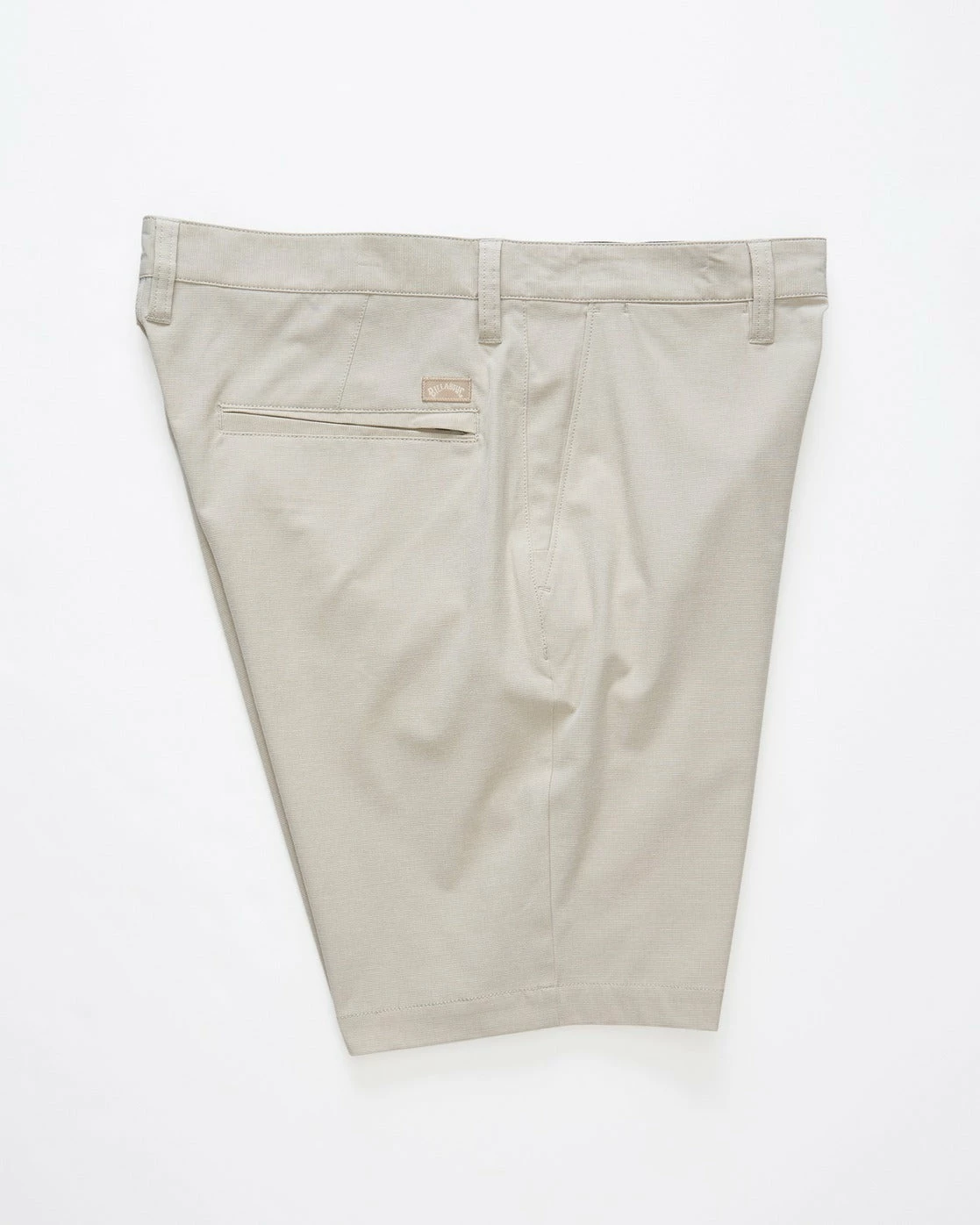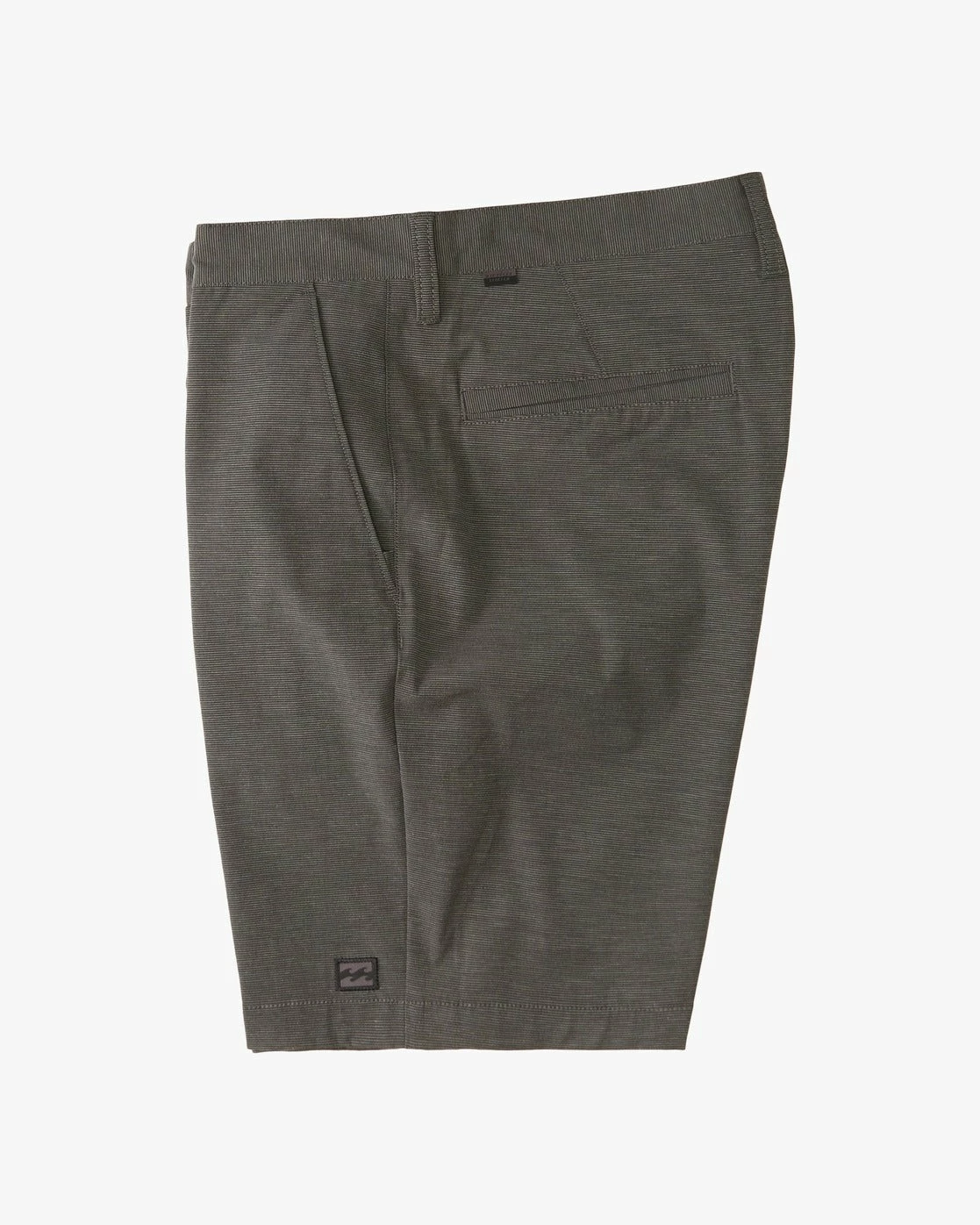Billabong logo branding on front left hem.