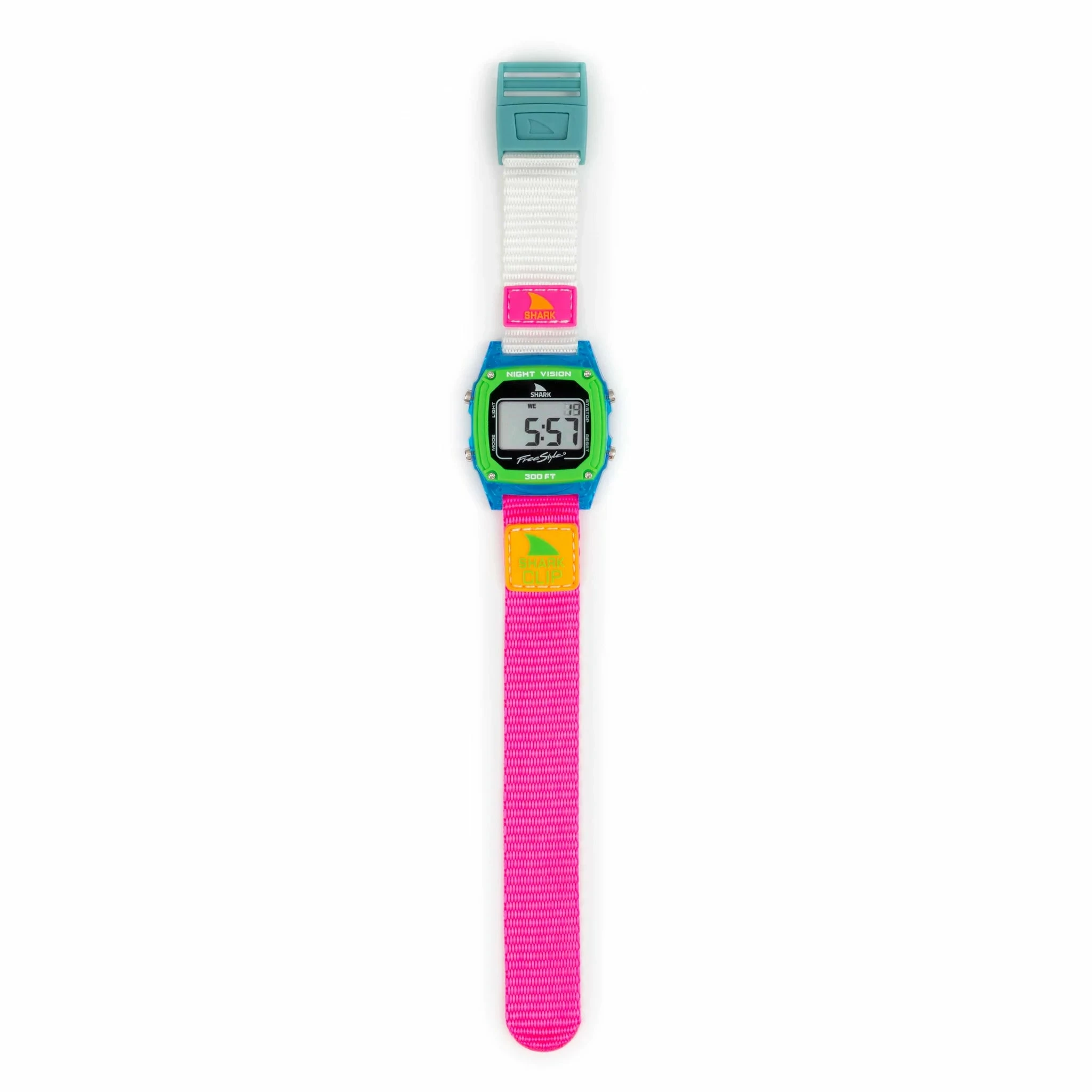 Retro-futurism at its finest! The Shark Clip features the original clip band system that ignited the Freestyle brand. Much like a seatbelt, just clip in to keep your watch safe, snug and comfortable. Other features include alarm, dual time, countdown timer, stopwatch, and night vision backlight. Like all Shark Watches, the Shark Clip is backed by our limited lifetime warranty.