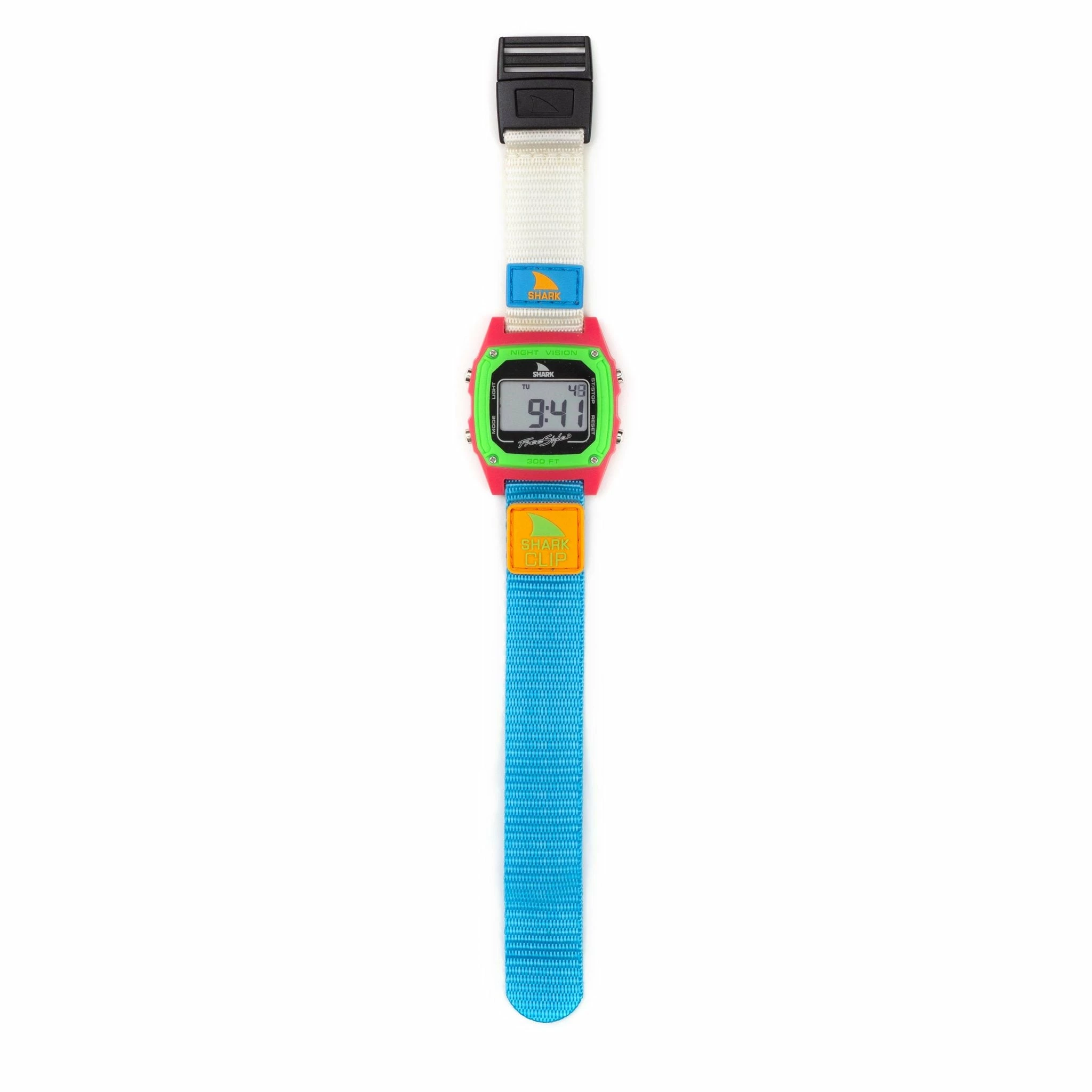 The Clip goes back to the original band design, a quick snap and you are off. Other features include alarm, dual time, countdown timer, stopwatch, and night vision backlight.