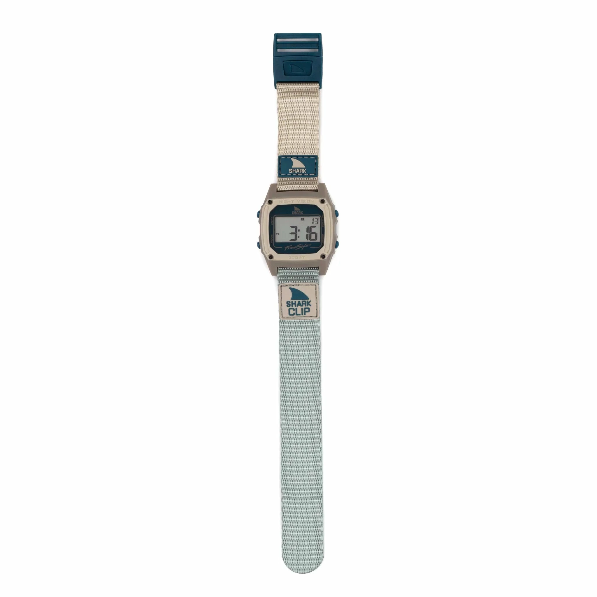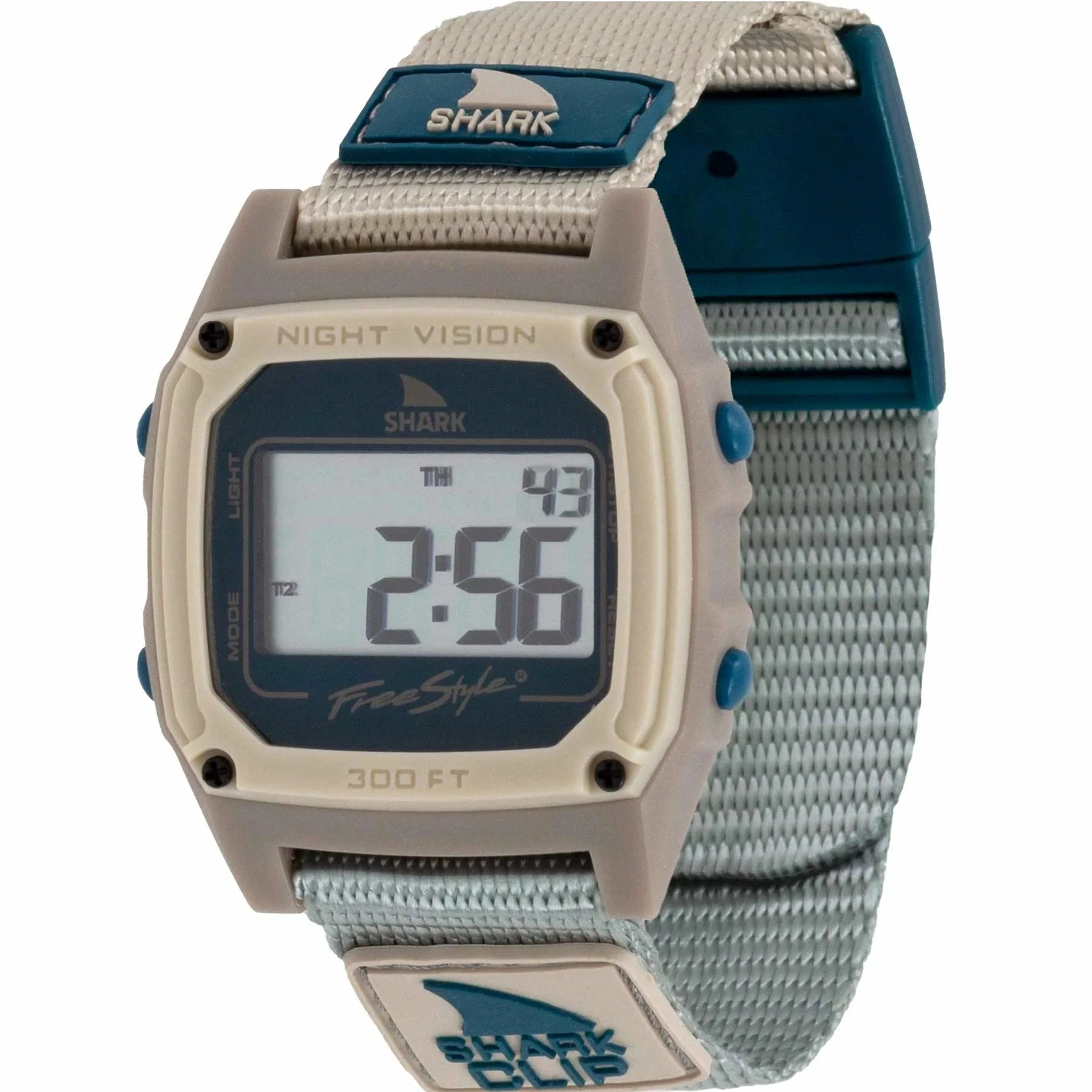 Retro-futurism at its finest! The Shark Clip features the original clip band system that ignited the Freestyle brand. Much like a seatbelt, just clip in to keep your watch safe, snug and comfortable. Other features include alarm, dual time, countdown timer, stopwatch, and night vision backlight. Like all Shark Watches, the Shark Clip is backed by our limited lifetime warranty.