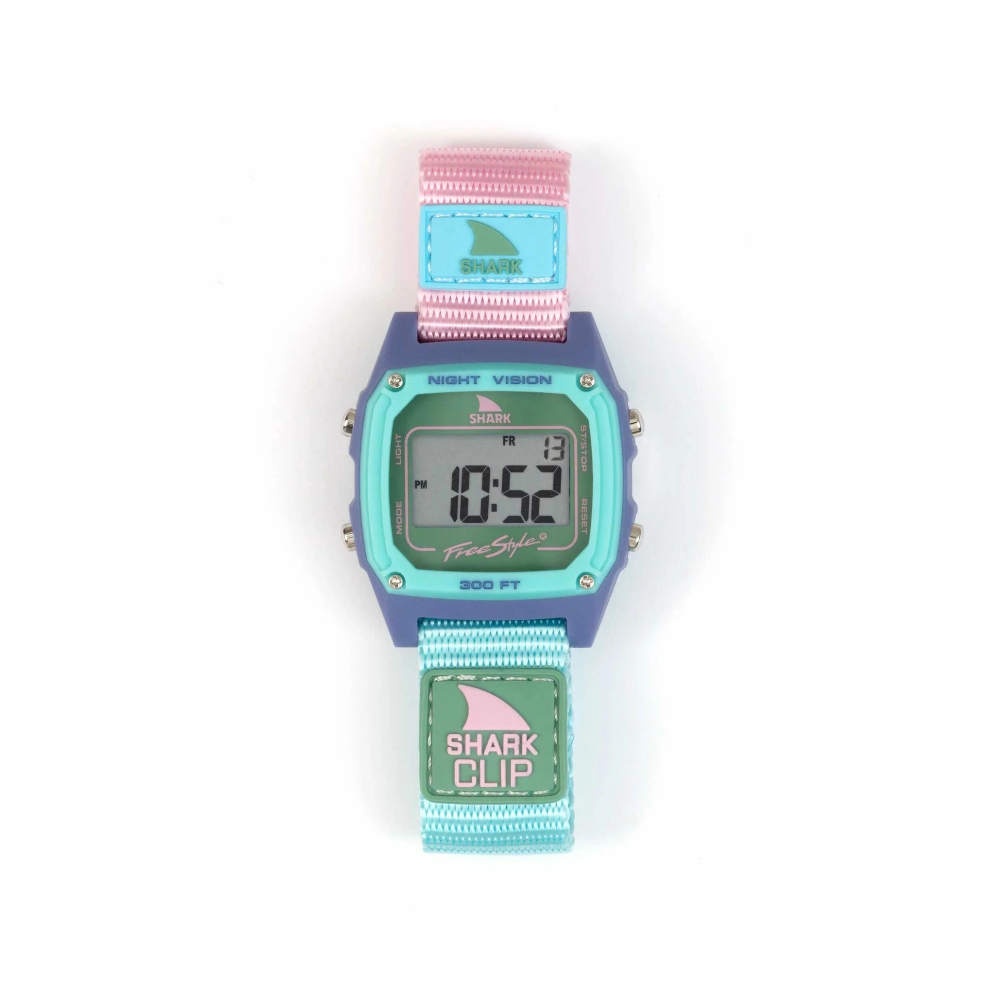 Retro-futurism at its finest! The Shark Clip features the original clip band system that ignited the Freestyle brand. Much like a seatbelt, just clip in to keep your watch safe, snug and comfortable. Other features include alarm, dual time, countdown timer, stopwatch, and night vision backlight. Like all Shark Watches, the Shark Clip is backed by our limited lifetime warranty.