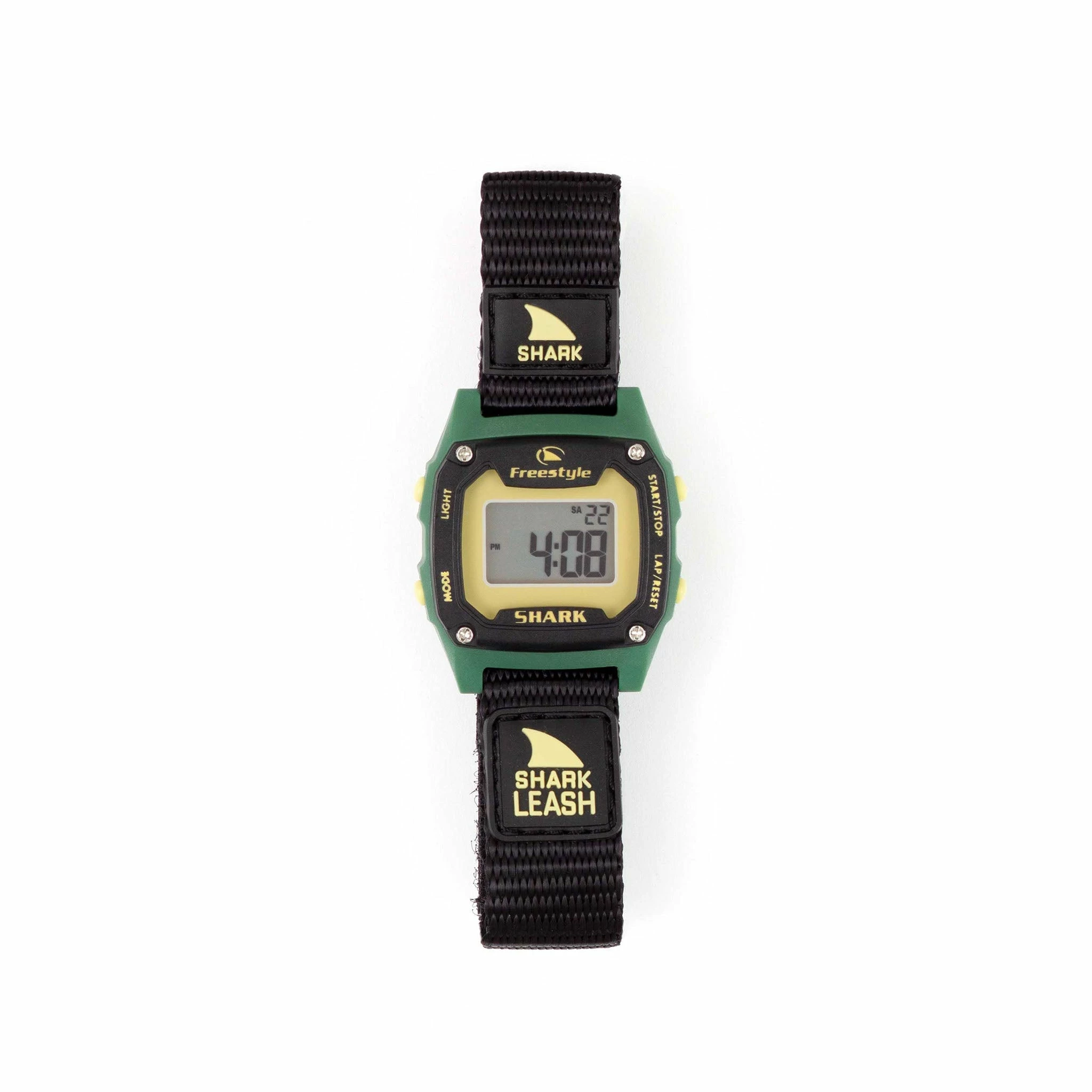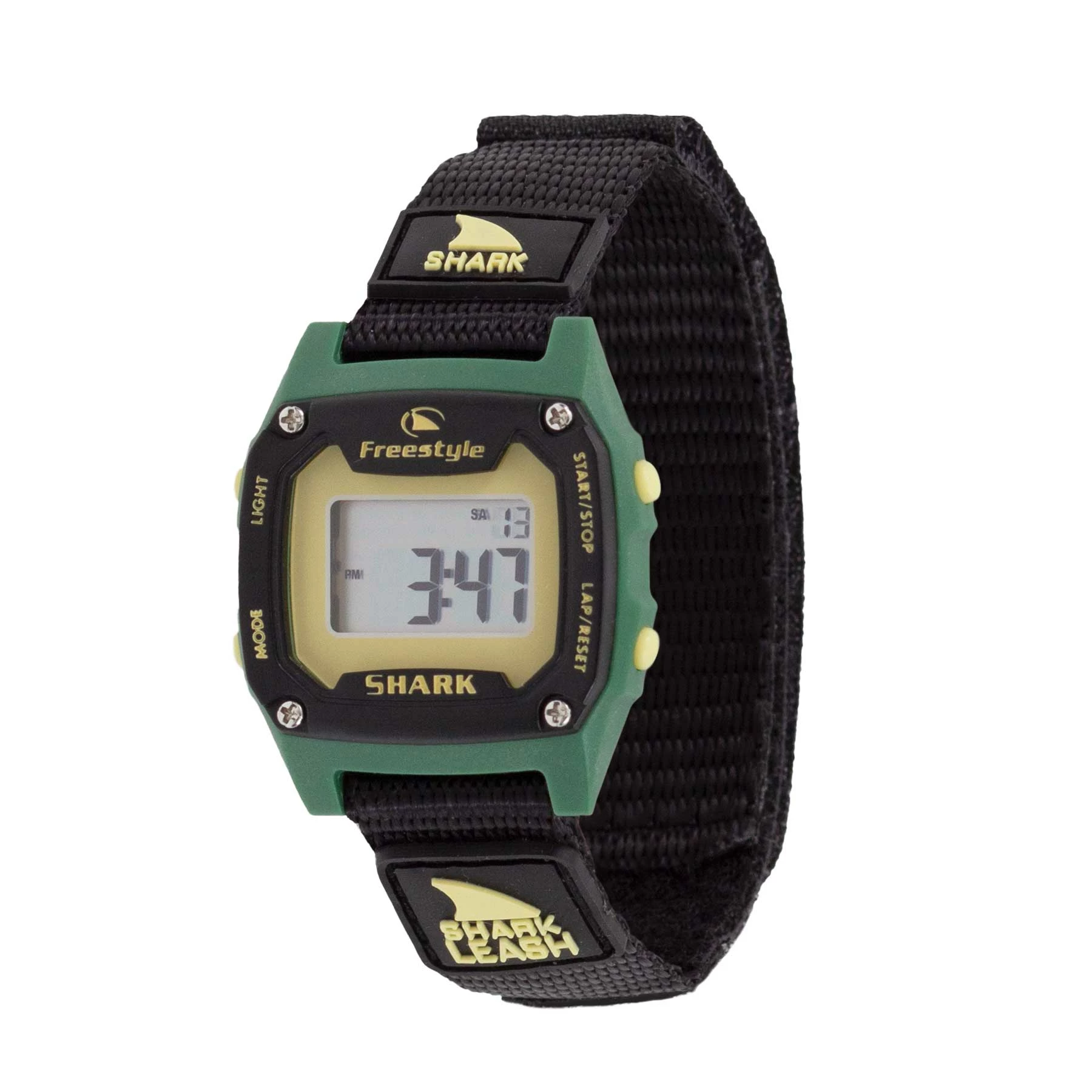 The mini-me version of the original Shark Leash, the Shark Leash Mini measures in with a 30mm case width best for fitting smaller wrists. The Shark Leash Mini is action-ready with features including alarm, dual time, countdown timer, stopwatch, and night vision backlight. Like all Freestyle Watches, the Shark Leash Mini is backed by our limited lifetime warranty and water resistant to 100 meters.
