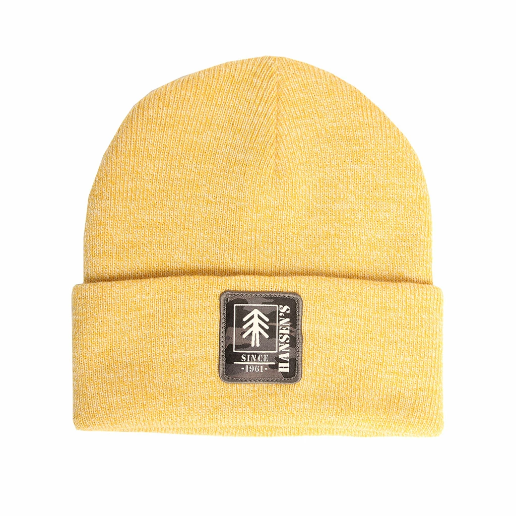 The Leroy Beanie has a sewn on Hansen label on the front.