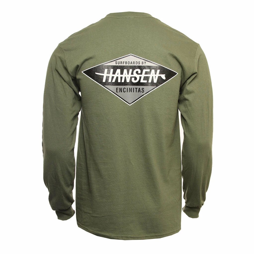 The Hansen Mens Diamond Long Sleeve Shirt is a 100% Cotton Tee featuring a front and back screen print and “Hansen” screen on left arm.