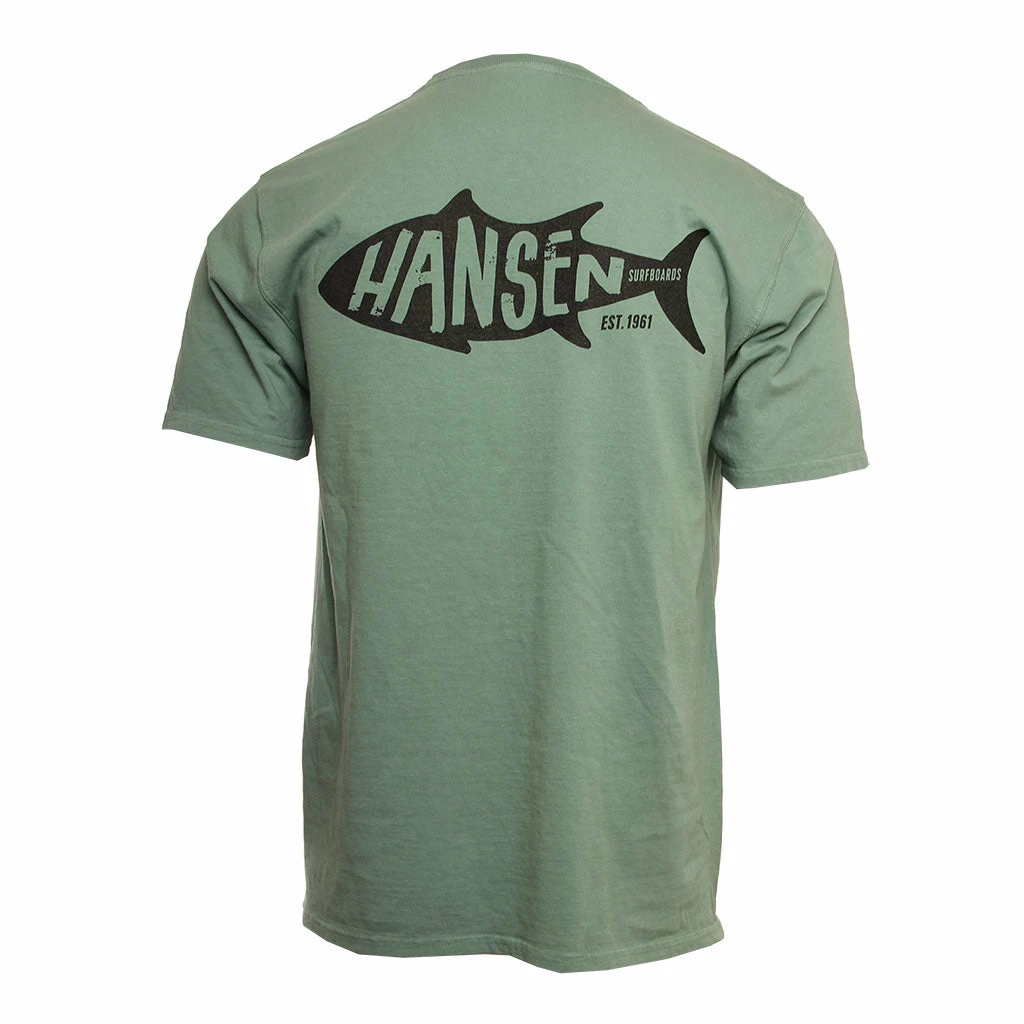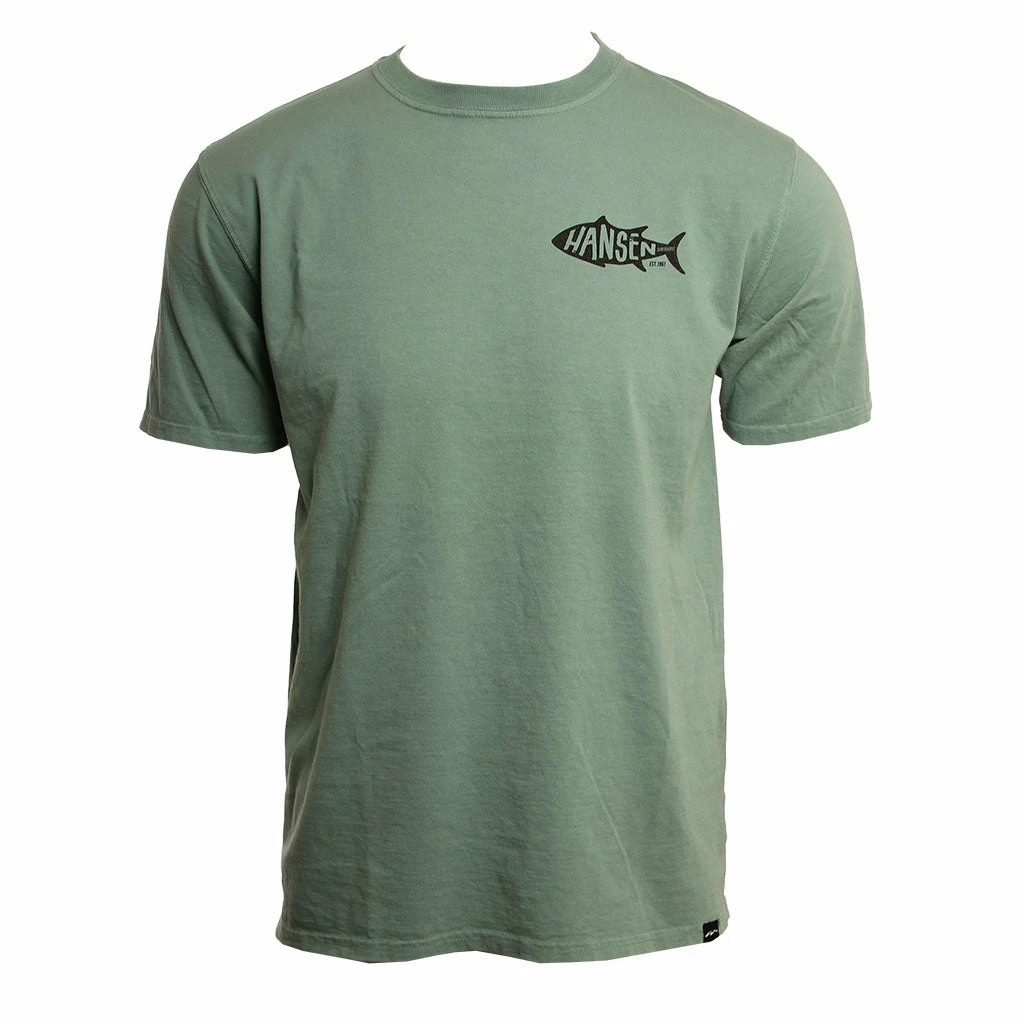 The Hansen Mens Fishy Shirt is a 100% Cotton tee with front and back screen prints