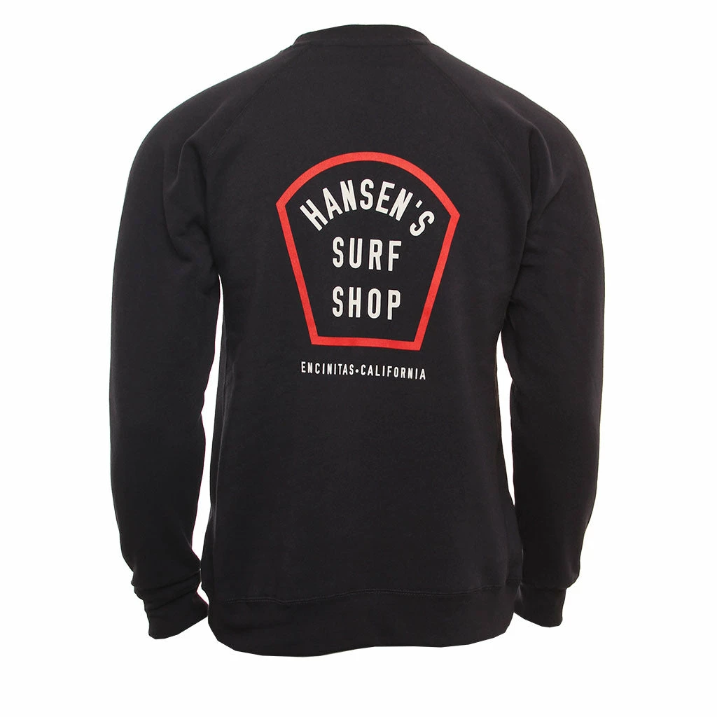 Regular fit crew neck sweatshirt with front and back screen printed logos. Made of 52% cotton, 48% polyester.