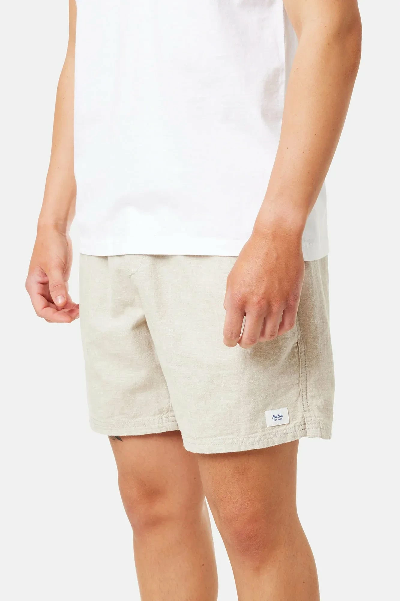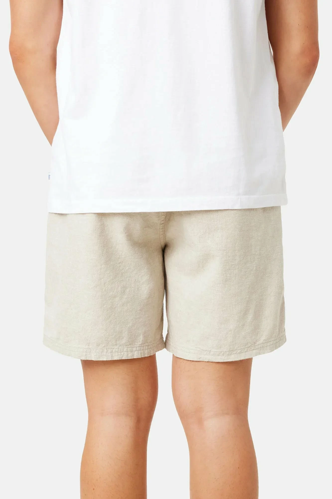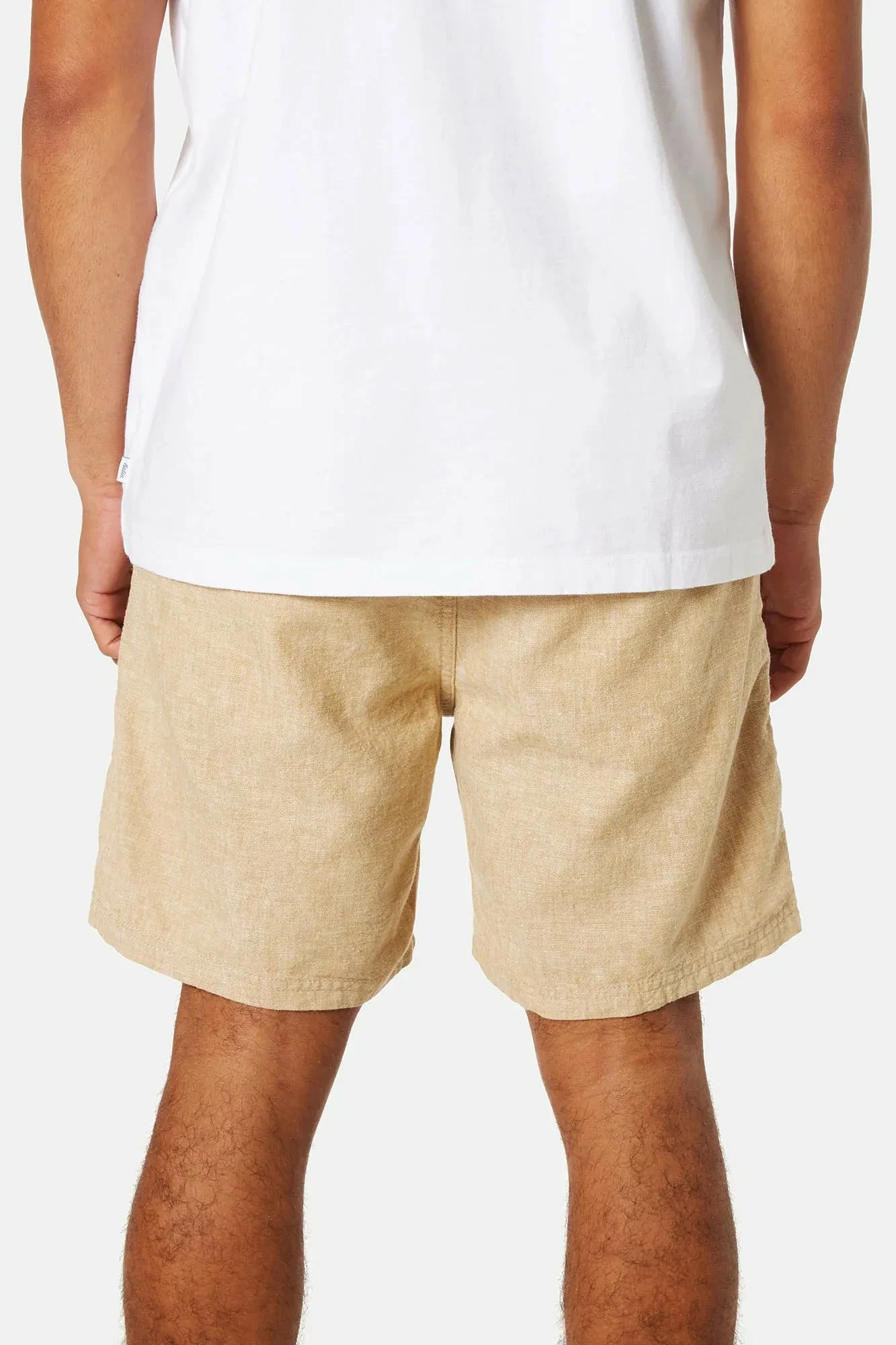 Made from a 75% cotton 25% linen-blend fabric, the Isaiah Local Short is both comfortable and good looking. Utilizing popular 16.5″ outseam ‘Local Short’ block, the Isaiah feature front welt side seam pockets, elastic waistband with drawcords, back welt pockets, faux fly and an internal diagonal pinstripe binding.