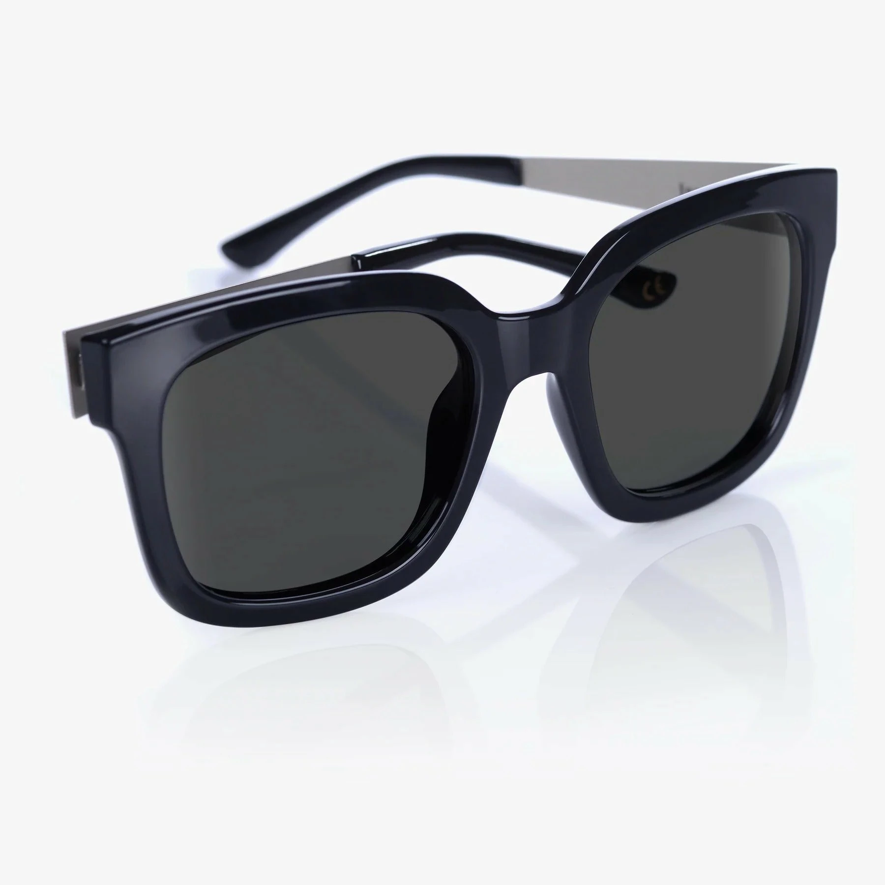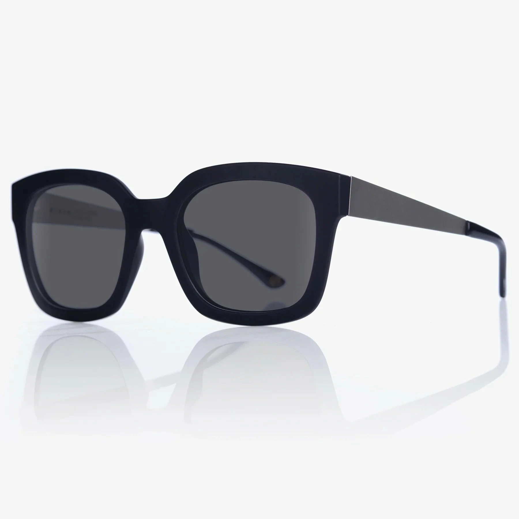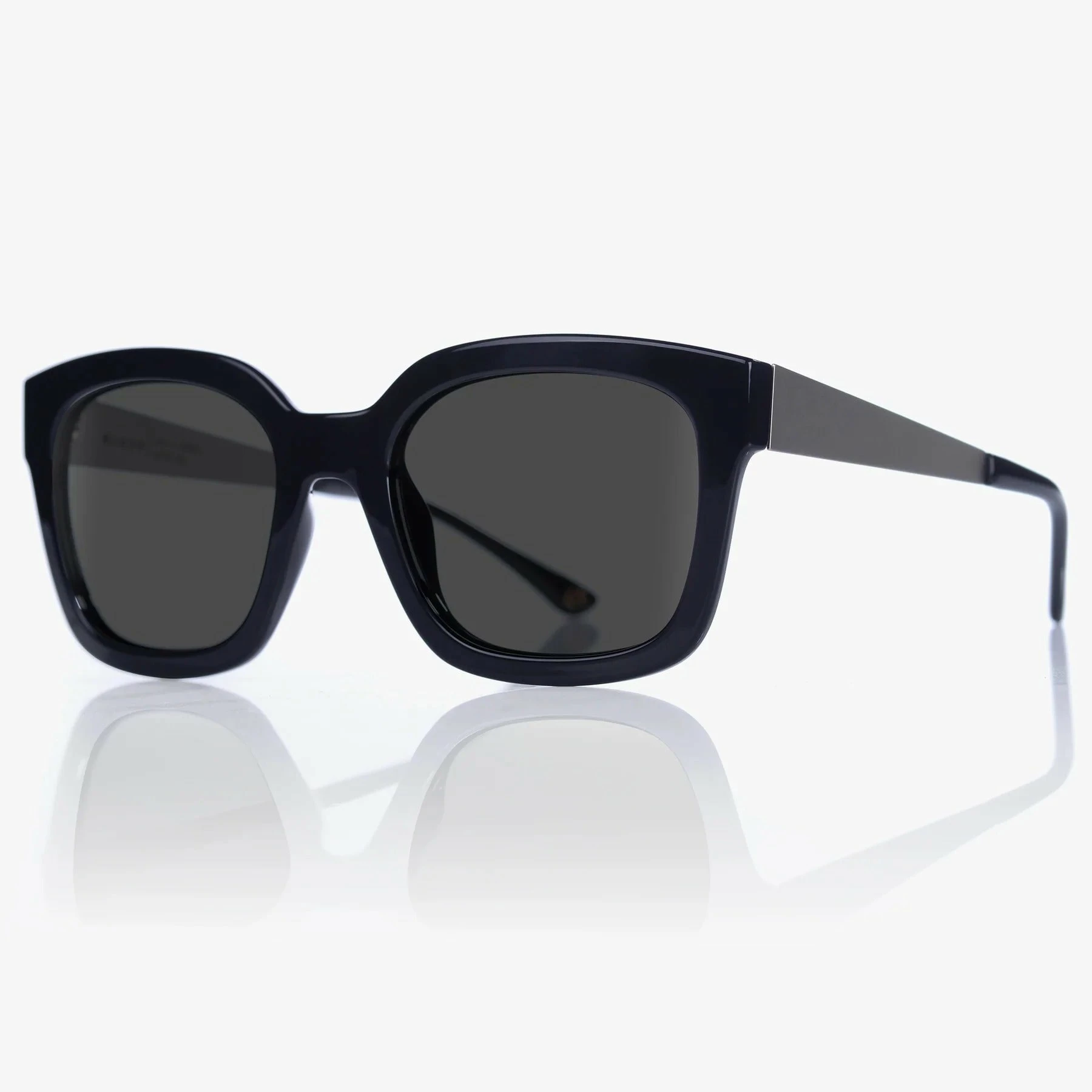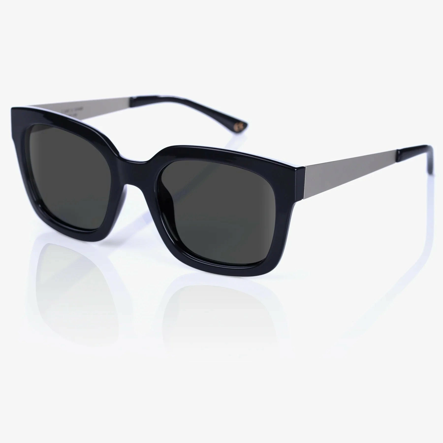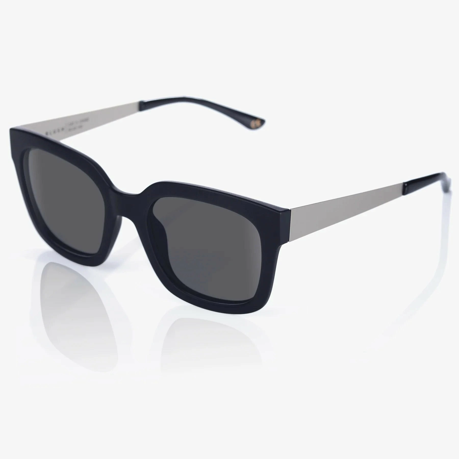 Square frame with silver metal temples.