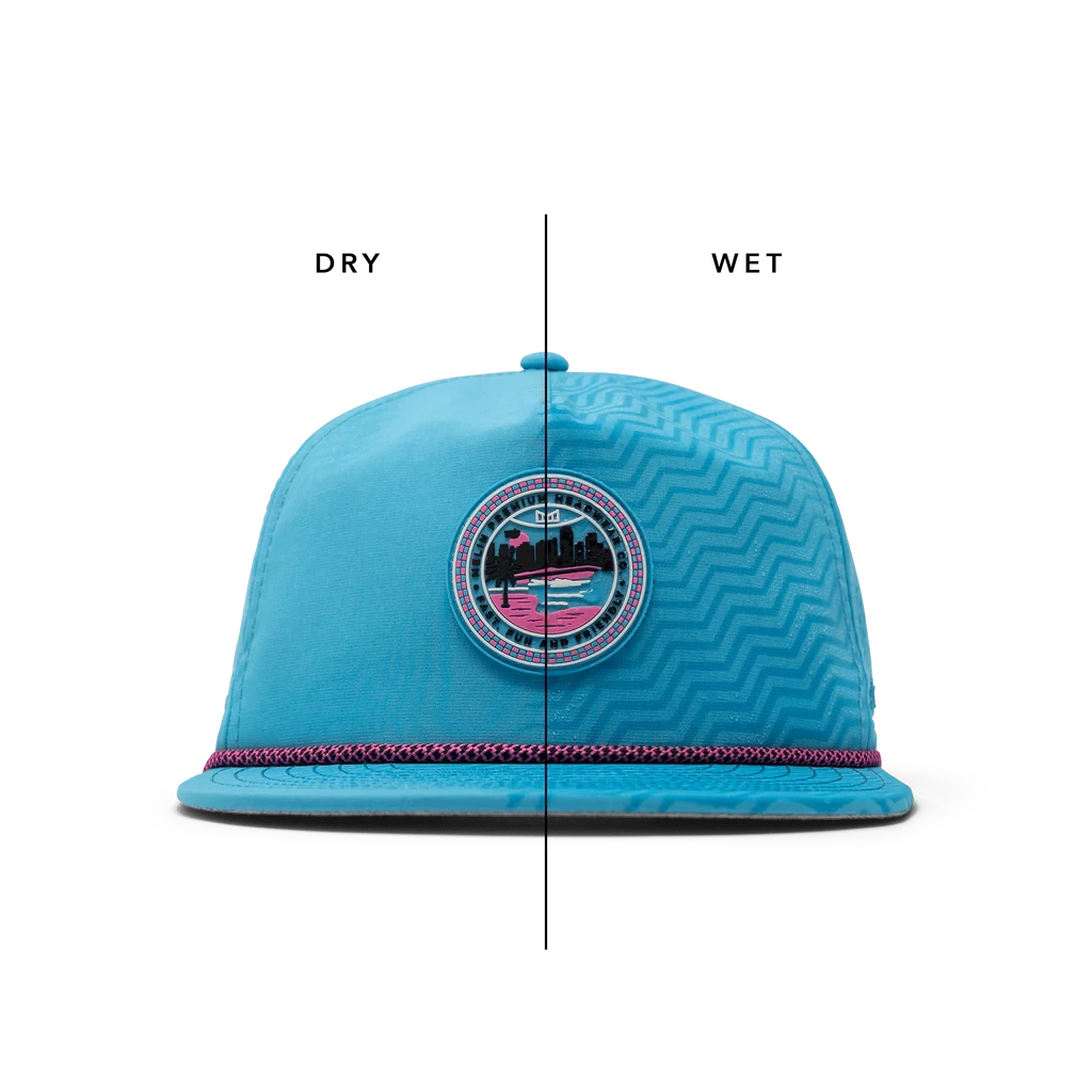 Go ahead and dive in this summer with the Neon Hydrochromic Collection. Available in Odyssey and Coronado, you can bring the party to the beach, the lake, or the backyard pool. With Hydrochromic tech in each hat, hop in the water to reveal hidden custom designs that appear only when the hat is wet and vacation mode is on.