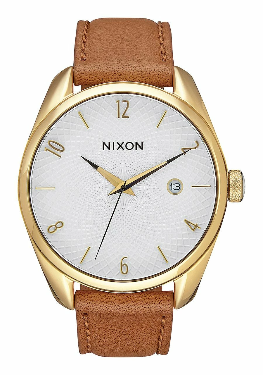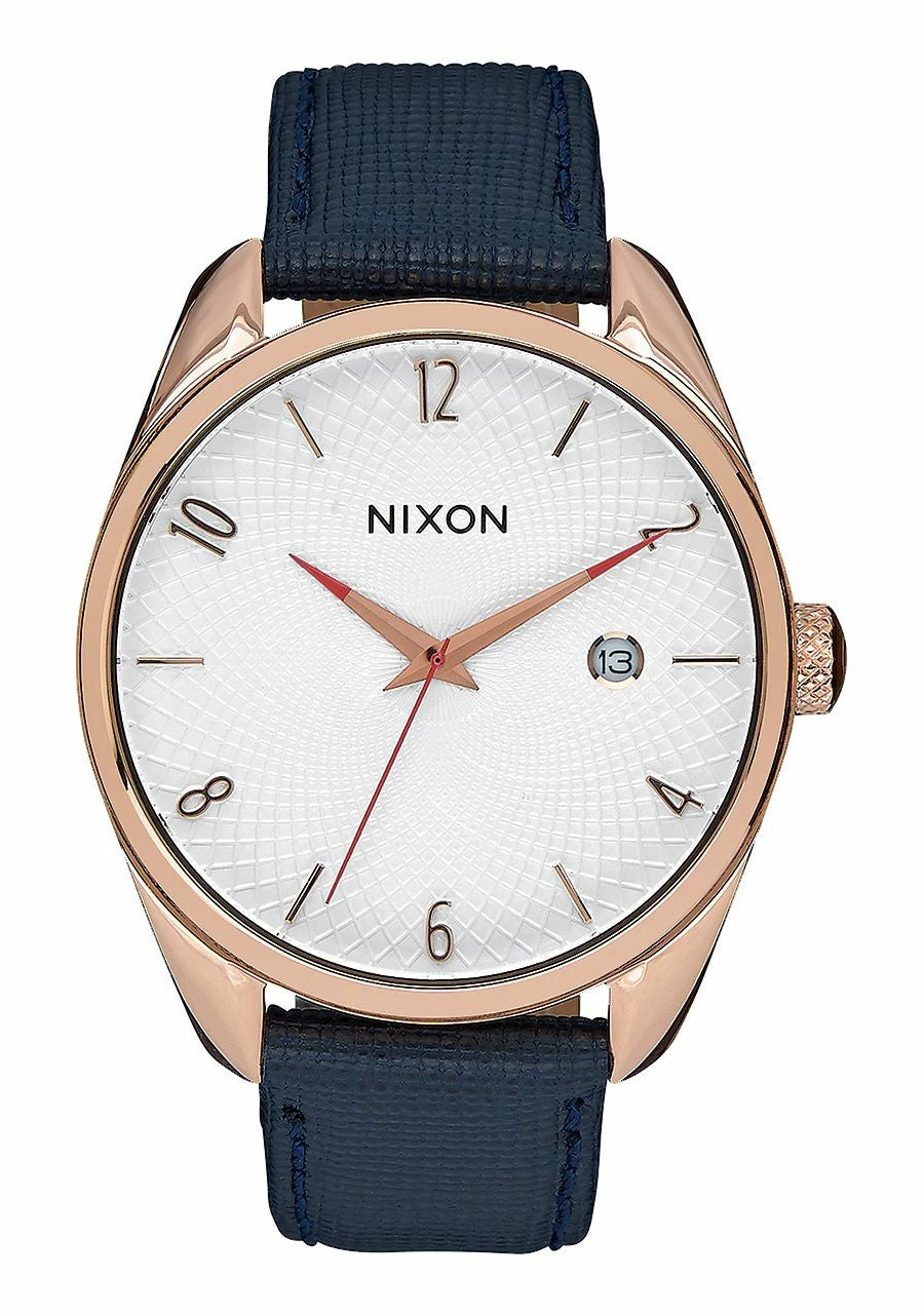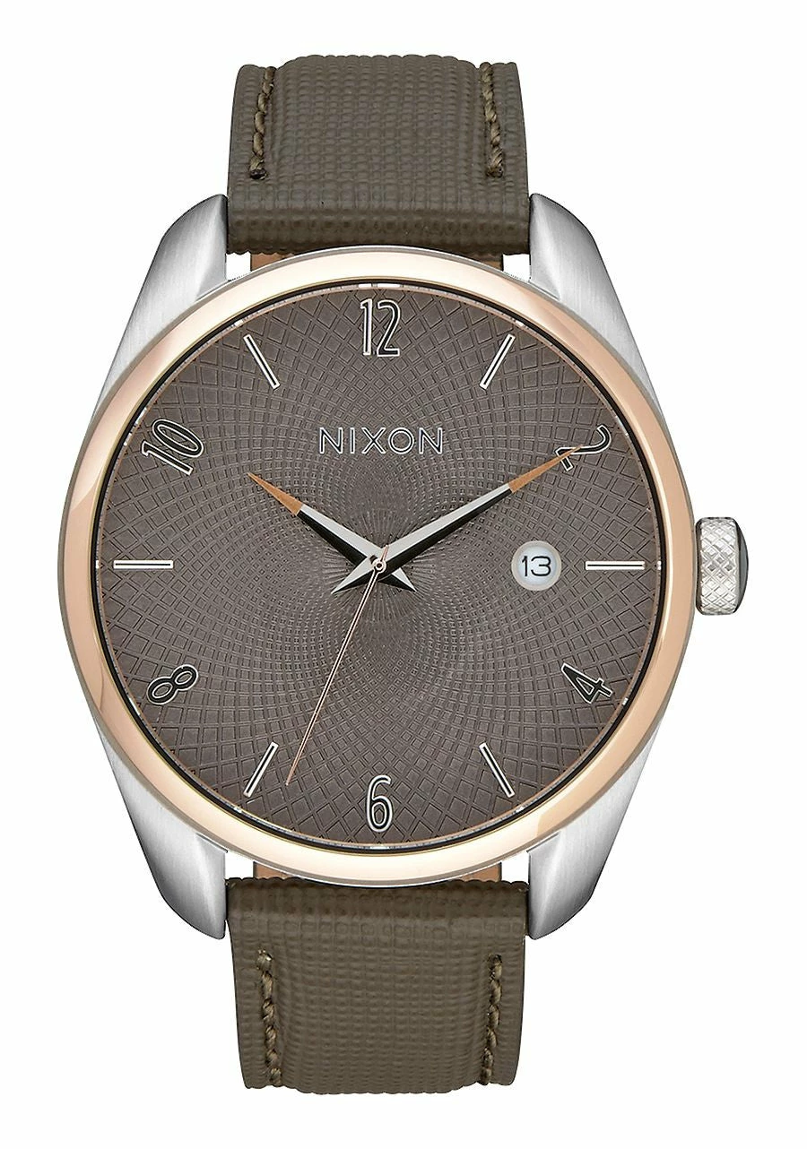 With a touch of color, debossed dial pattern, and custom 18 mm tapered leather band the Bullet Leather is perfected balance.