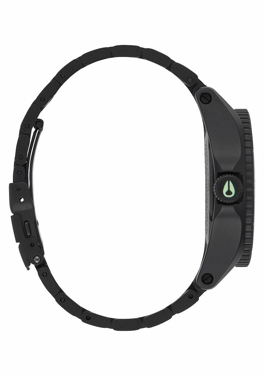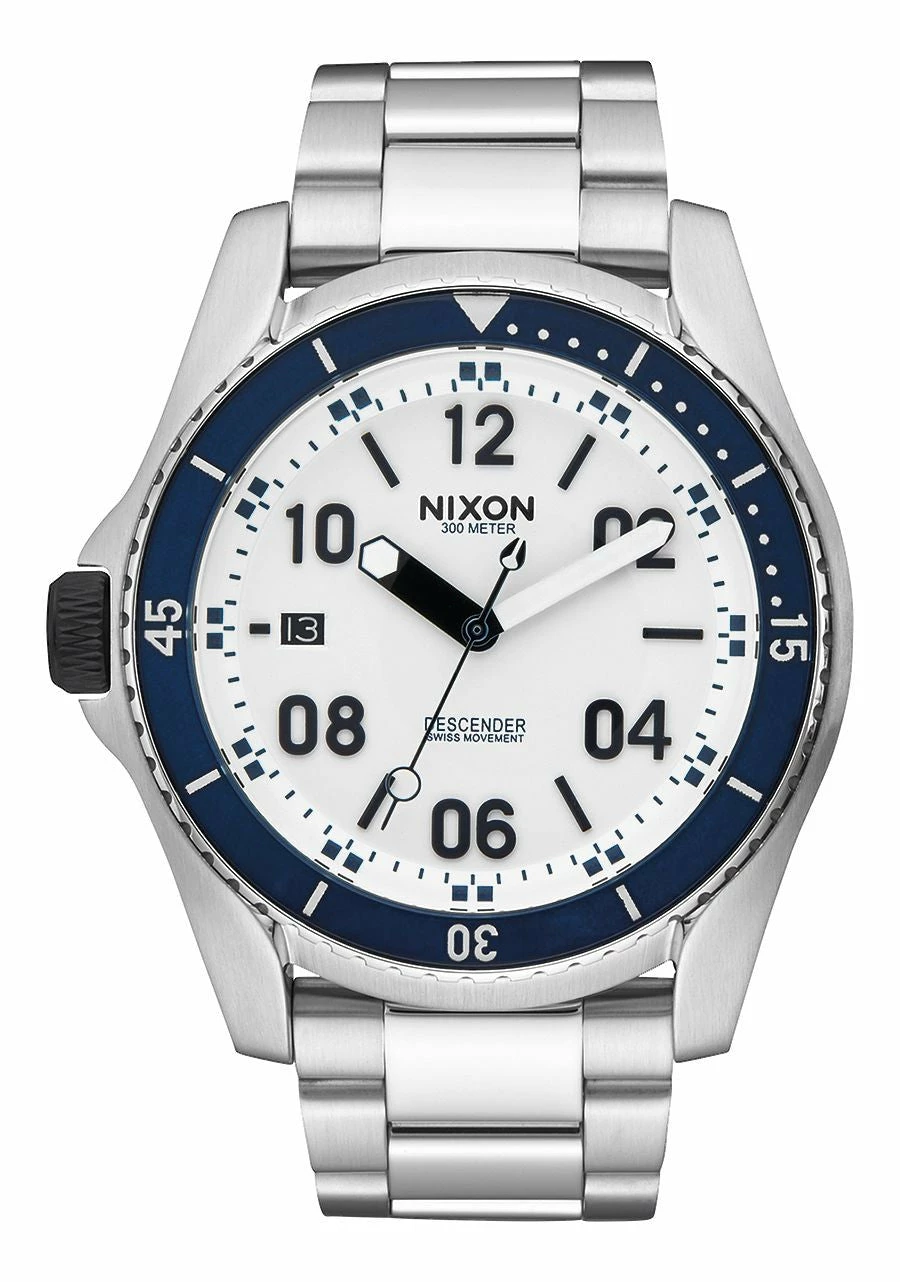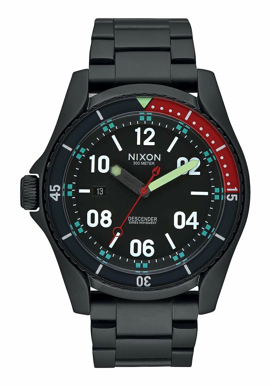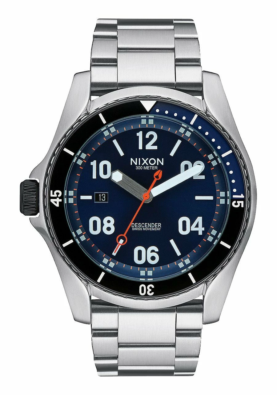 Built for the modern waterman, the Descender combines classic sport styling with deep-sea functionality. A 30 ATM case takes resistant to new depths and adds a recessed rotating bezel and shark tooth knurled crown.