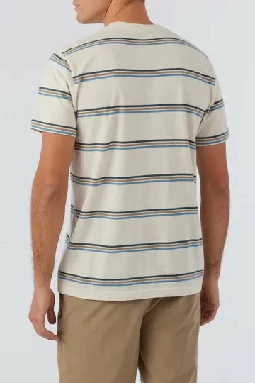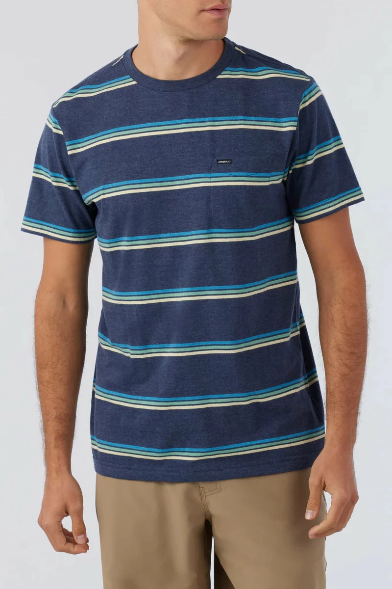 A classic striped tee that has a premium cotton blend design, front chest pocket and fits relaxed on the body.