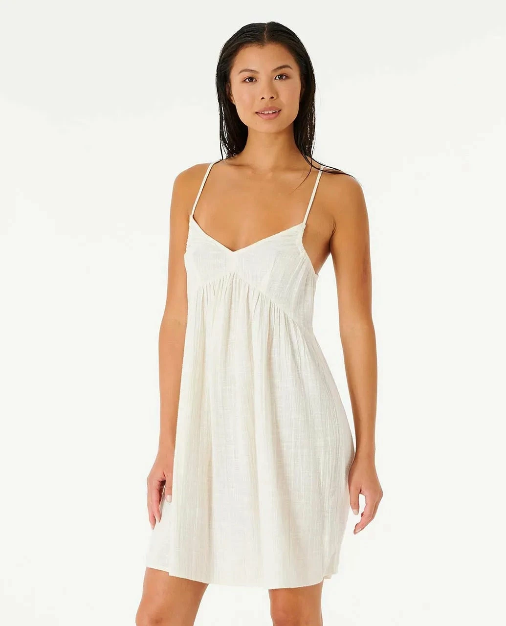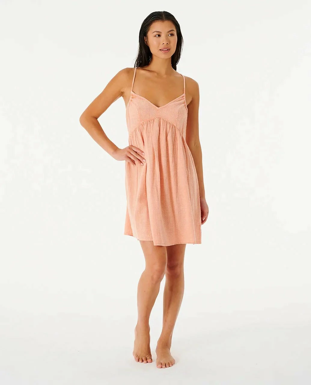 Simple, elegant, beach-worthy styles, the Classic Surf range is ideal for bare-foot strolls, and easy-wear fashion. This cover up dress is no different, with light tones, a relaxed fit with adjustable straps, and shirring details, it’s perfect as overswim or a sunny day throw-on-and-go!