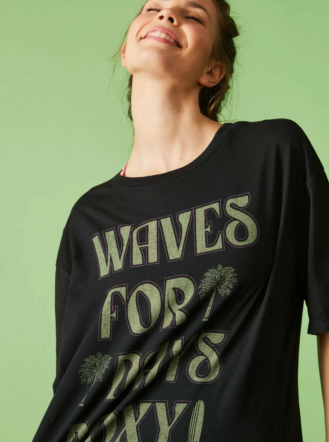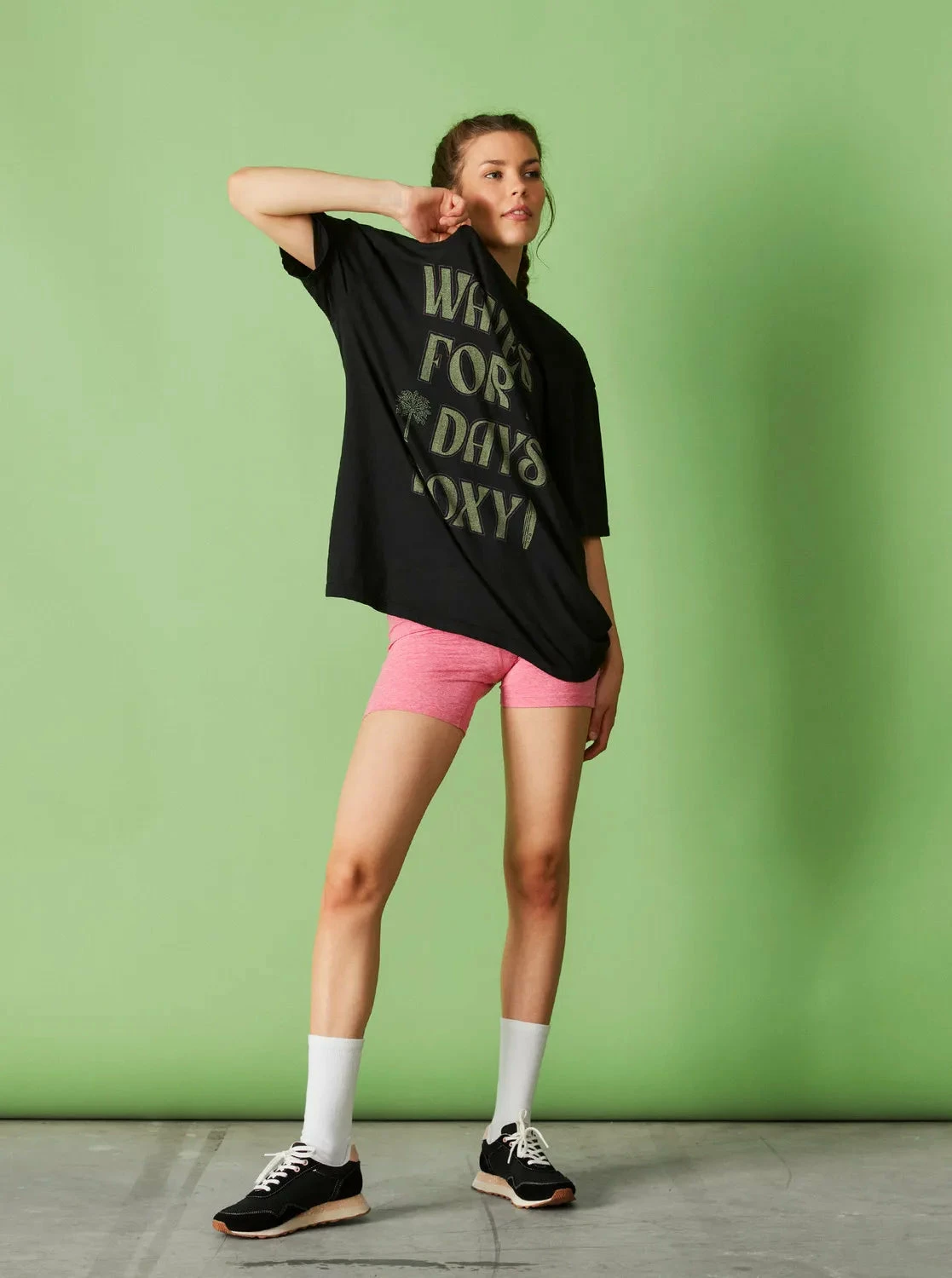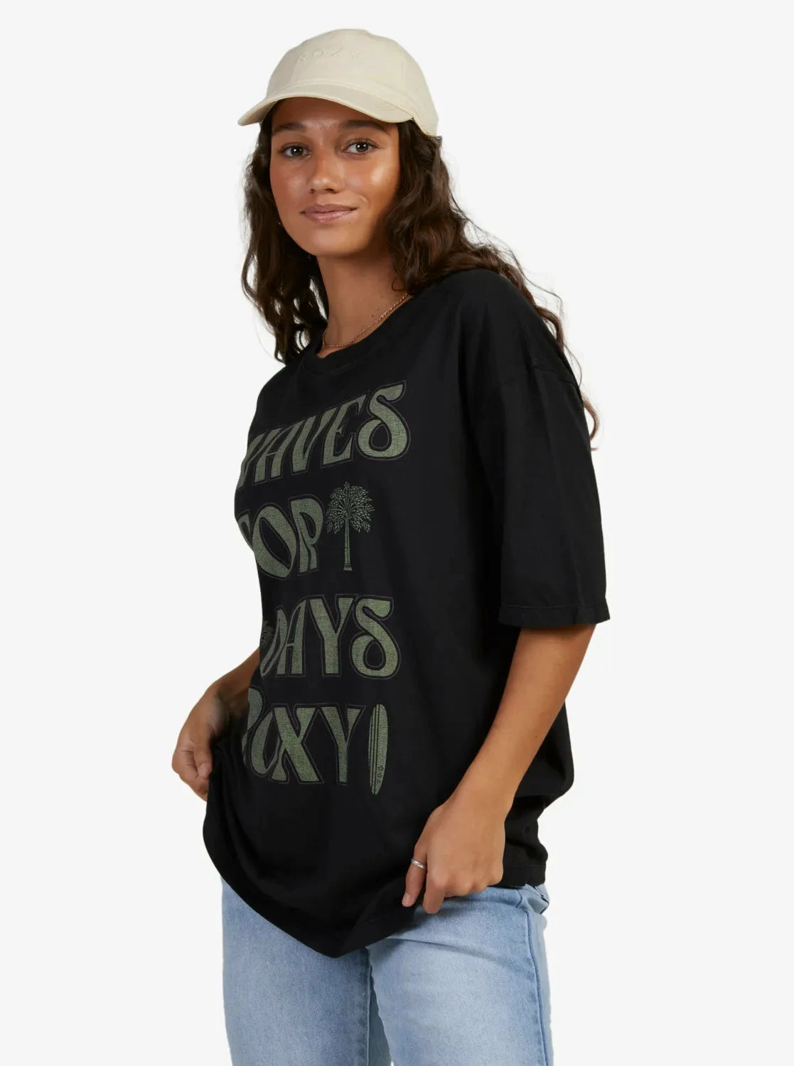 Roxy surf inspired graphic on center front
