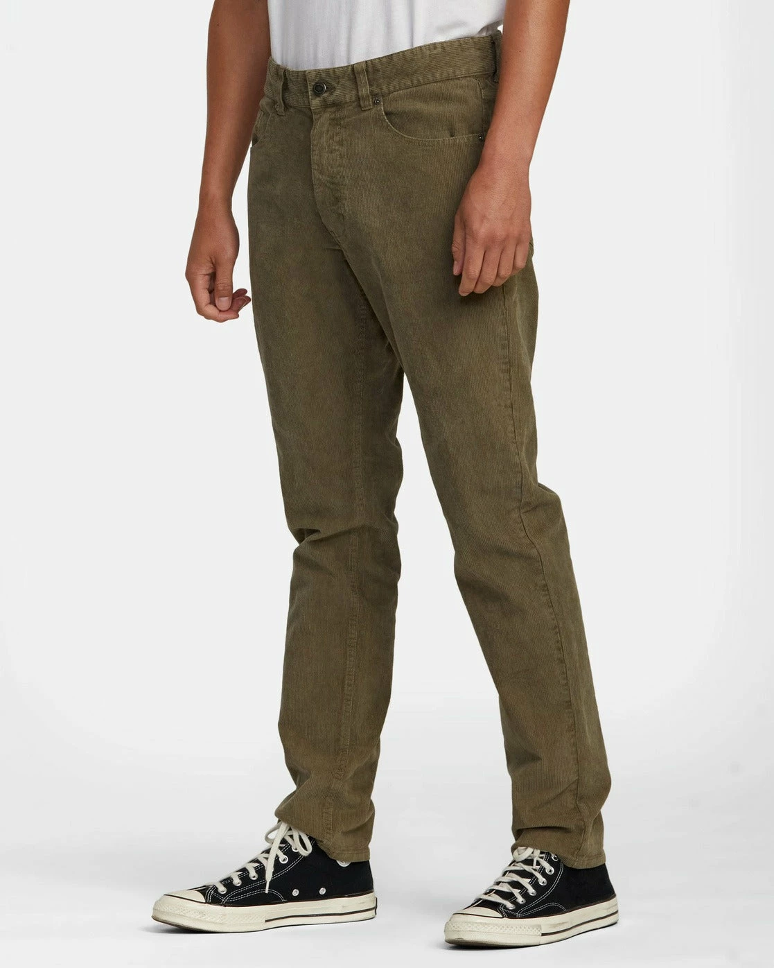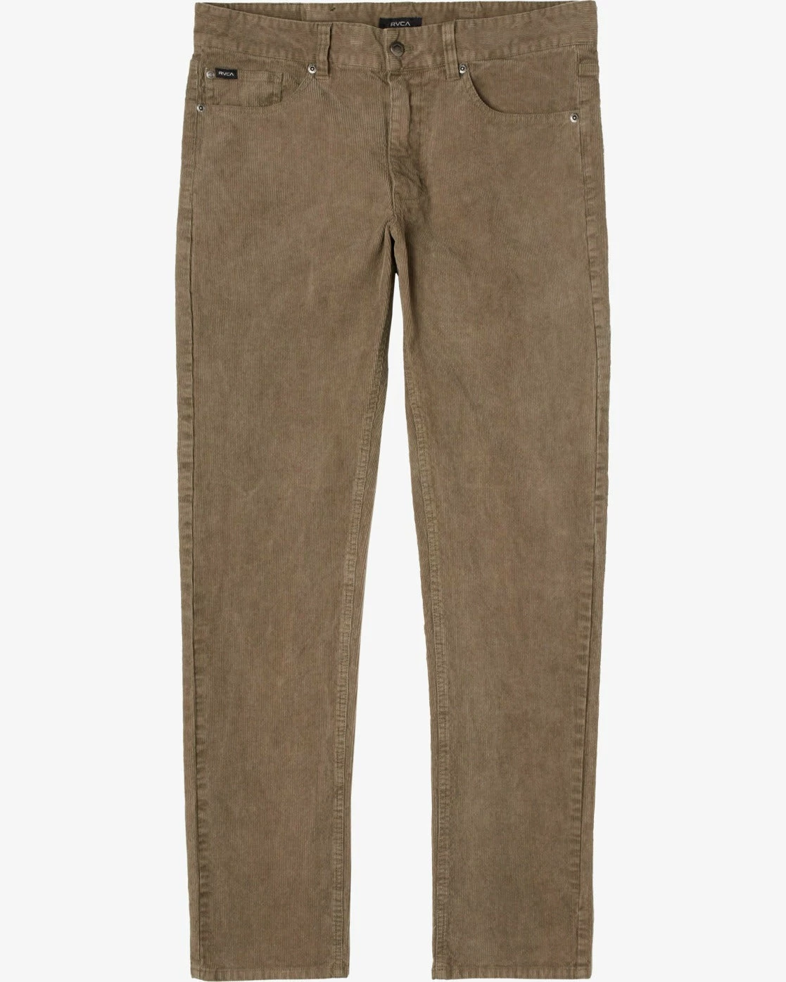 THE RVCA DAGGERS PIGMENT CORDUROY PANTS COMBINE EASY STYLE AND EFFORTLESS COMFORT IN ONE. MADE FROM SOFT, PIGMENT DYED CORDUROY WITH STRETCH, THESE MEN’S PANTS FEATURE A RVCA SHANK BUTTON AND ZIP FLY CLOSURE, 5-POCKET STYLING, RVCA RIVETS AND LOGO BRANDING THROUGHOUT.