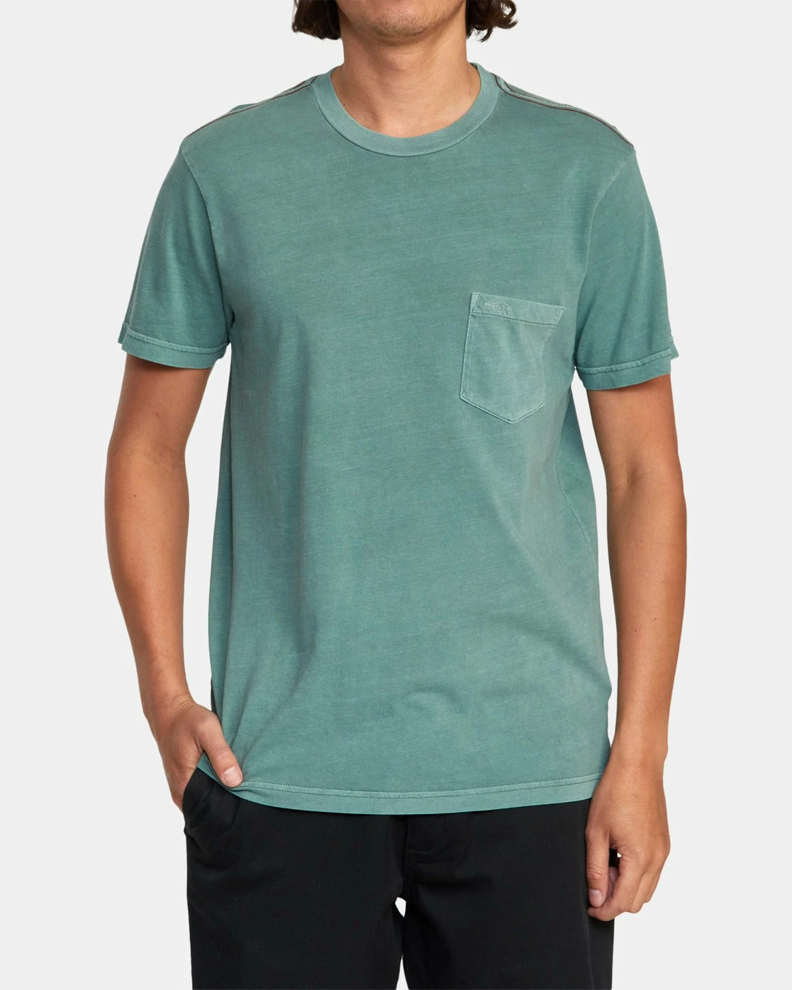 WASHED AND WORN, THE RVCA PTC 2 PIGMENT TEE OFFERS A BROKEN-IN QUALITY TO YOUR ESSENTIAL SOLID POCKET TEE. CUT WITH A HERITAGE SLIM FIT, THE MEN’S POCKET TEE IS FINISHED WITH TONAL RVCA EMBROIDERY AT THE POCKET AND RVCA’S TRADEMARK RED STITCH AT THE SHOULDERS. MADE FROM PREMIUM COTTON JERSEY WITH A PIGMENT DYE, THE SOLID TEE TAKES ON A VINTAGE LOOK AND FEEL.