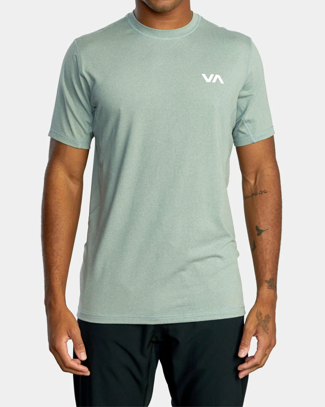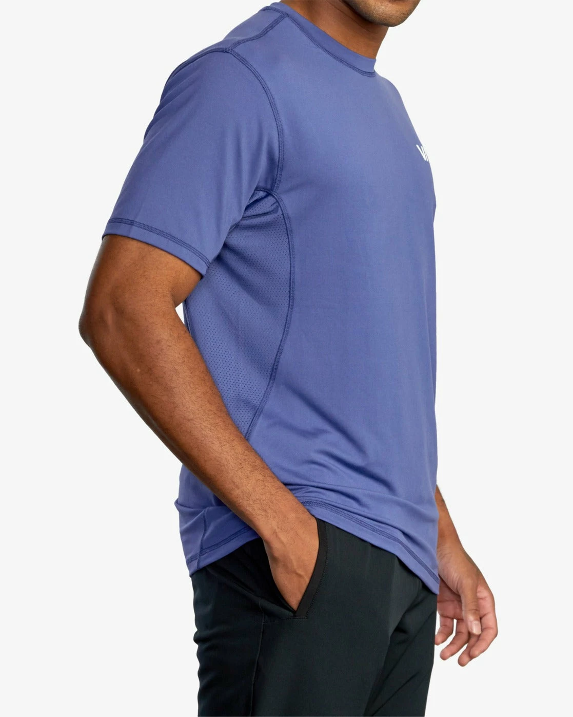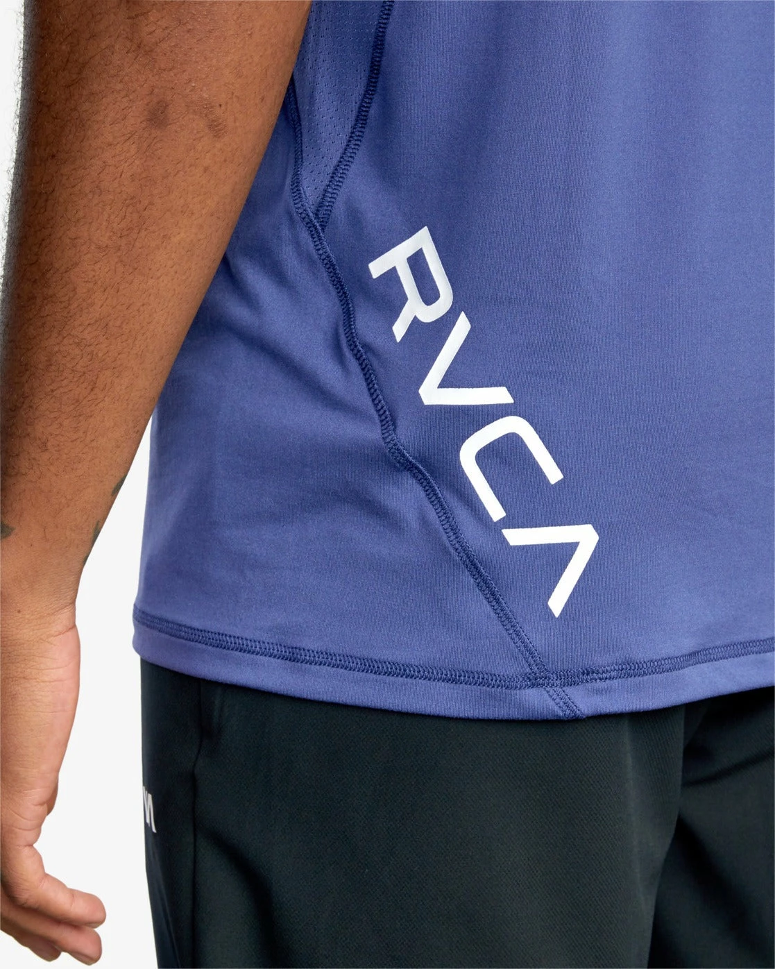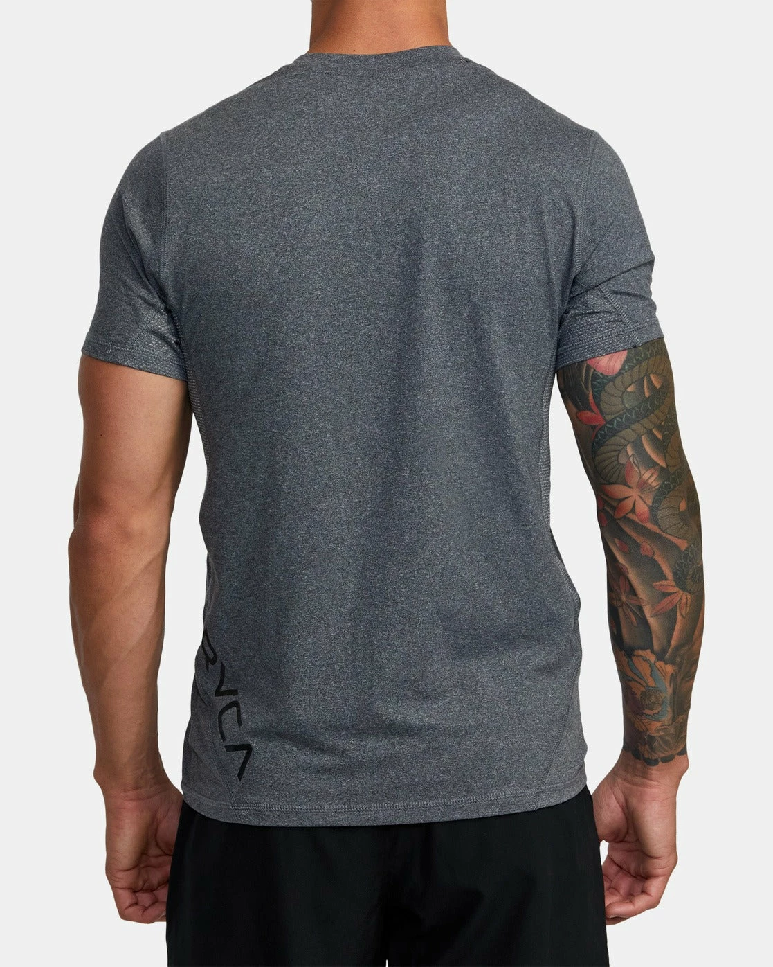THE RVCA SPORT VENT TEE COMBINES BREATHABLE COMFORT WITH EFFORTLESS STYLE. MADE FROM KNIT POLYESTER STRETCH WITH MESH GUSSETS UNDER THE ARMS, THIS MEN’S SPORT T-SHIRT FEATURES A CREW NECKLINE, SHORT SLEEVES AND RVCA LOGO BRANDING AT THE FRONT AND BACK.