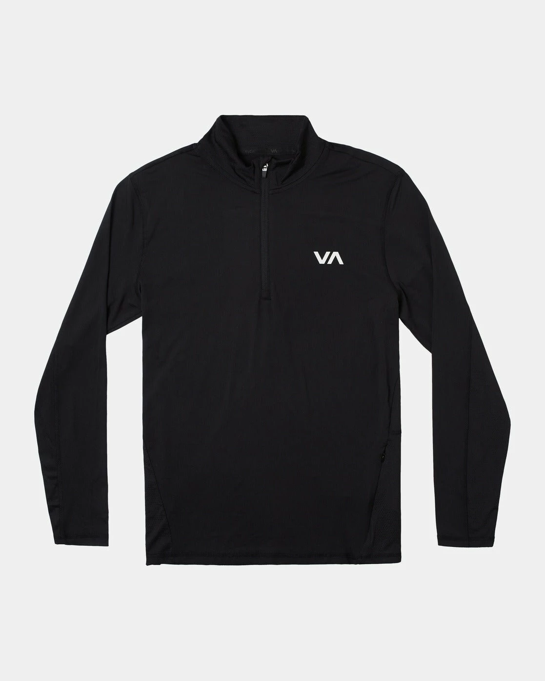 THE RVCA SPORT VENT HALF-ZIP PULLOVER OFFERS LIGHTWEIGHT COVERAGE, COMFORT AND STYLE IN ONE. MADE FROM RECYCLED POLY STRETCH, THIS HALF-ZIP LONG SLEEVE PULLOVER FEATURES A MOCK NECK, MESH GUSSETS AT THE SIDES AND BACK, HIDDEN POCKET WITH ZIPPER AND VA RVCA PRINTS THROUGHOUT.