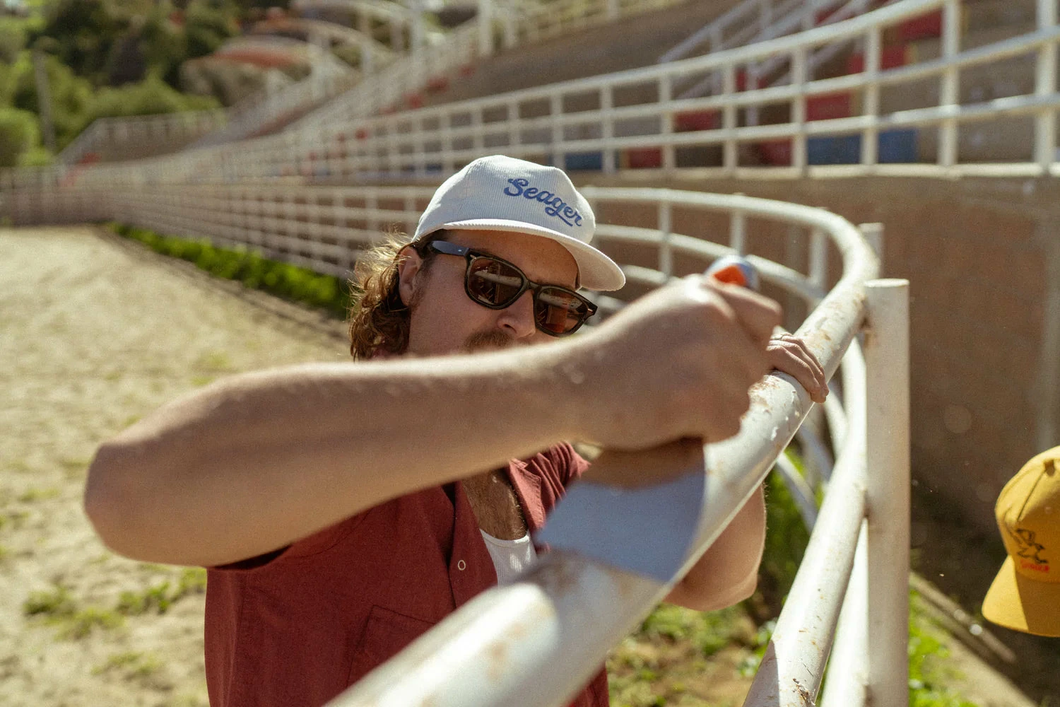 The Big Cream is made of 100% cotton corduroy and features an embroidered Seager Script font.