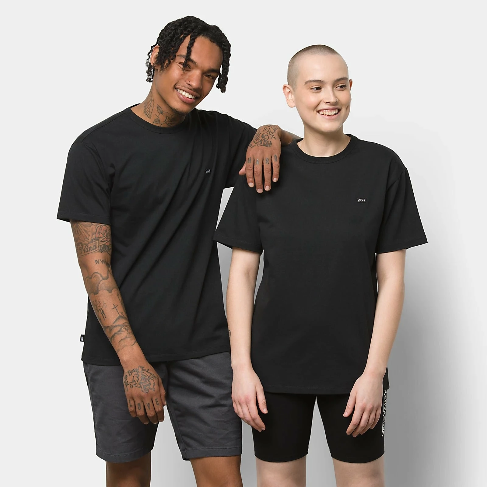 Everyone needs a T-shirt they can rely on. The Off The Wall Classic T-Shirt will end your search for the perfect tee so that you can focus on the more important things. Featuring an interior waffle print that pulls moisture away from the skin, this new T-shirt keeps you comfortable and dry while Sturdy Spun yarn provides durability and minimizes shrinking. With a bound rib collar and reinforced shoulder seams, premium Vans trims, an embroidered chest patch, and a checkerboard hanger loop, the Off The Wall tee will be the last T-shirt you’ll ever need. Fit type: classic. • COMFORT – Moisture-wicking interior waffle pattern pulls moisture away from the skin • DURABILITY: CONSTRUCTION – A bound rib collar and reinforced shoulder seams offer durability • DURABILITY: STURDY SPUN YARN – Sturdy Spun yarn provides durability and minimizes shrinking • 100% cotton • Embroidered chest patch • Custom checkerboard locker loop • Fit type: classic