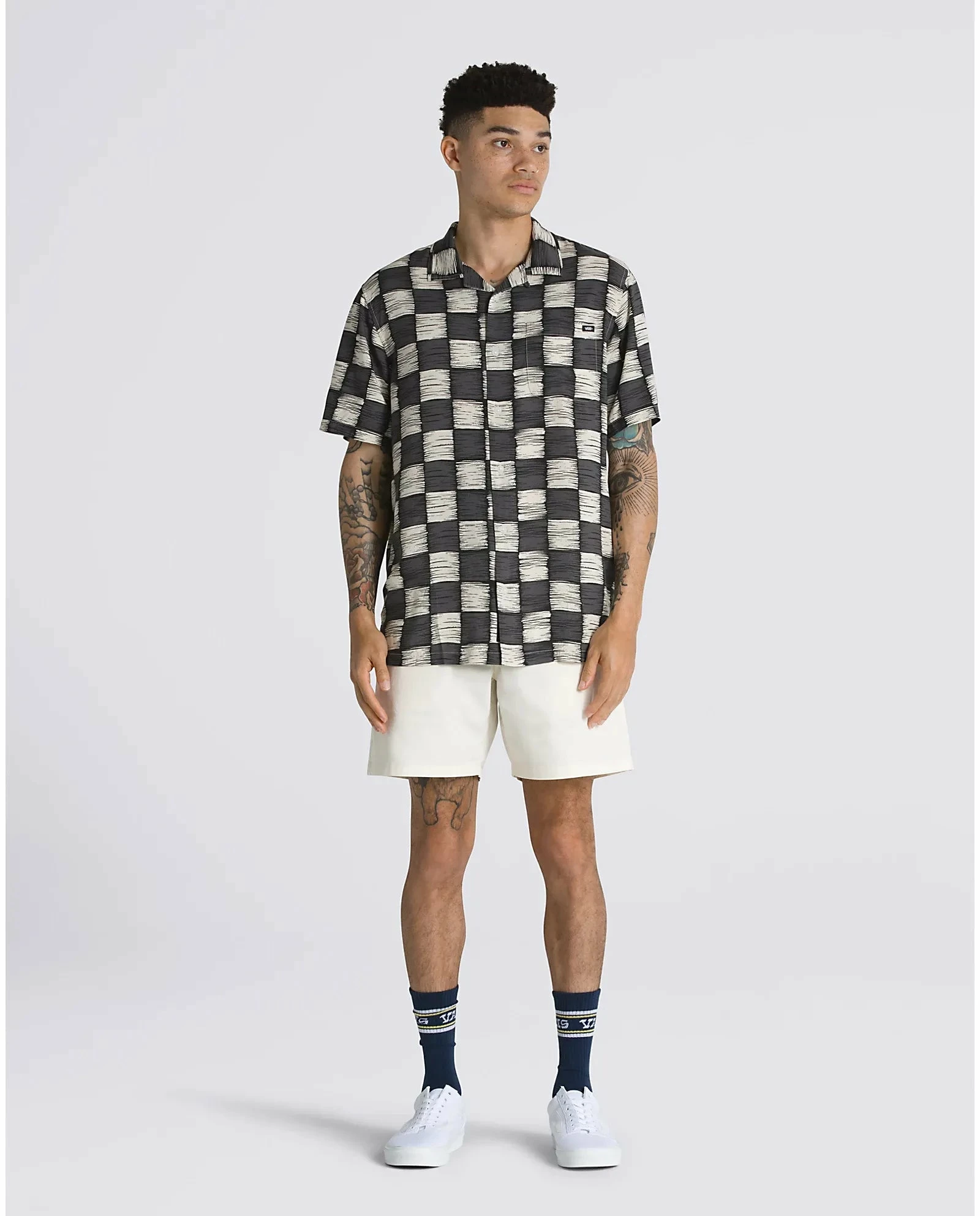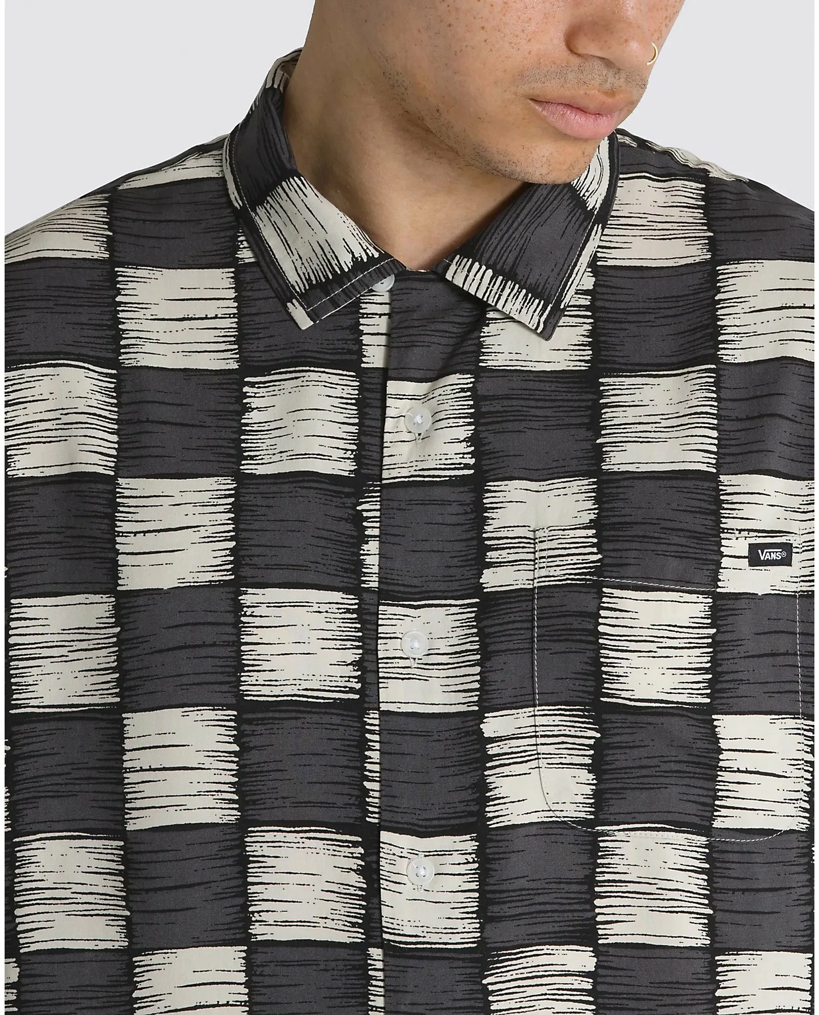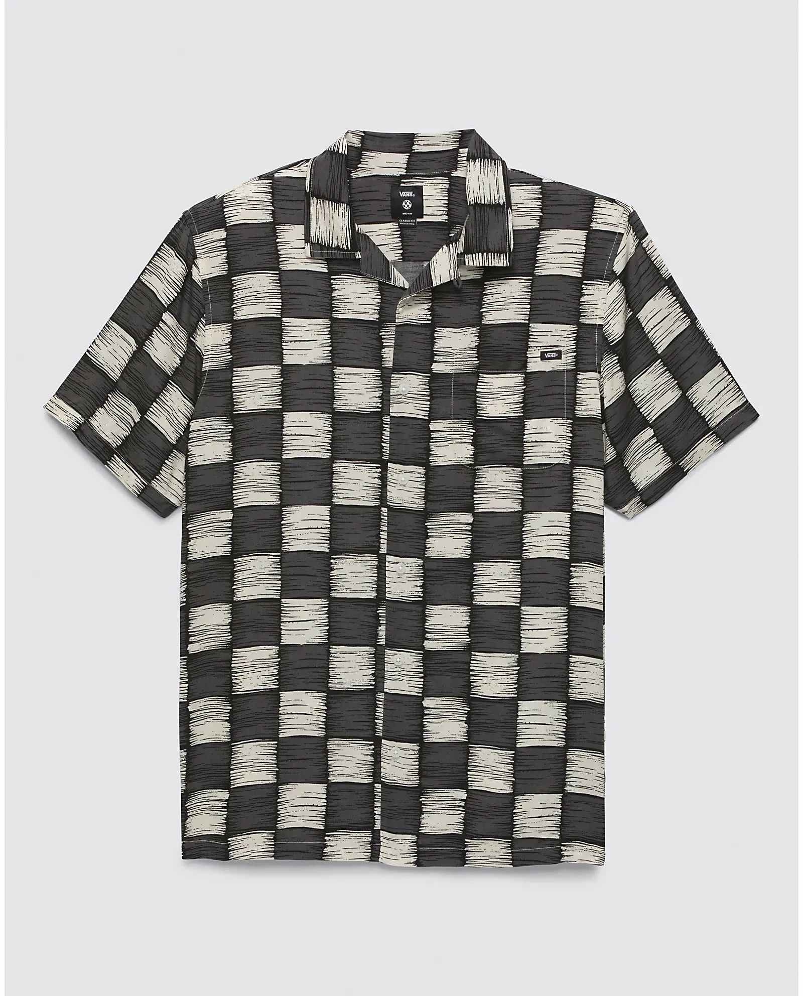 The Moore Buttondown Shirt is a classic rayon shirt with a unique take on an allover checker print and finished off with full button closure.