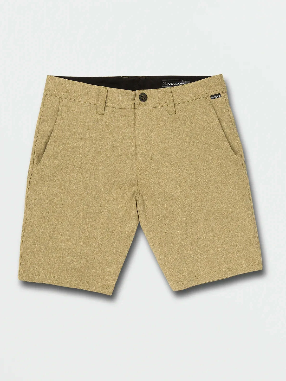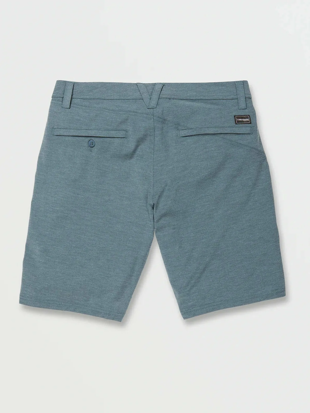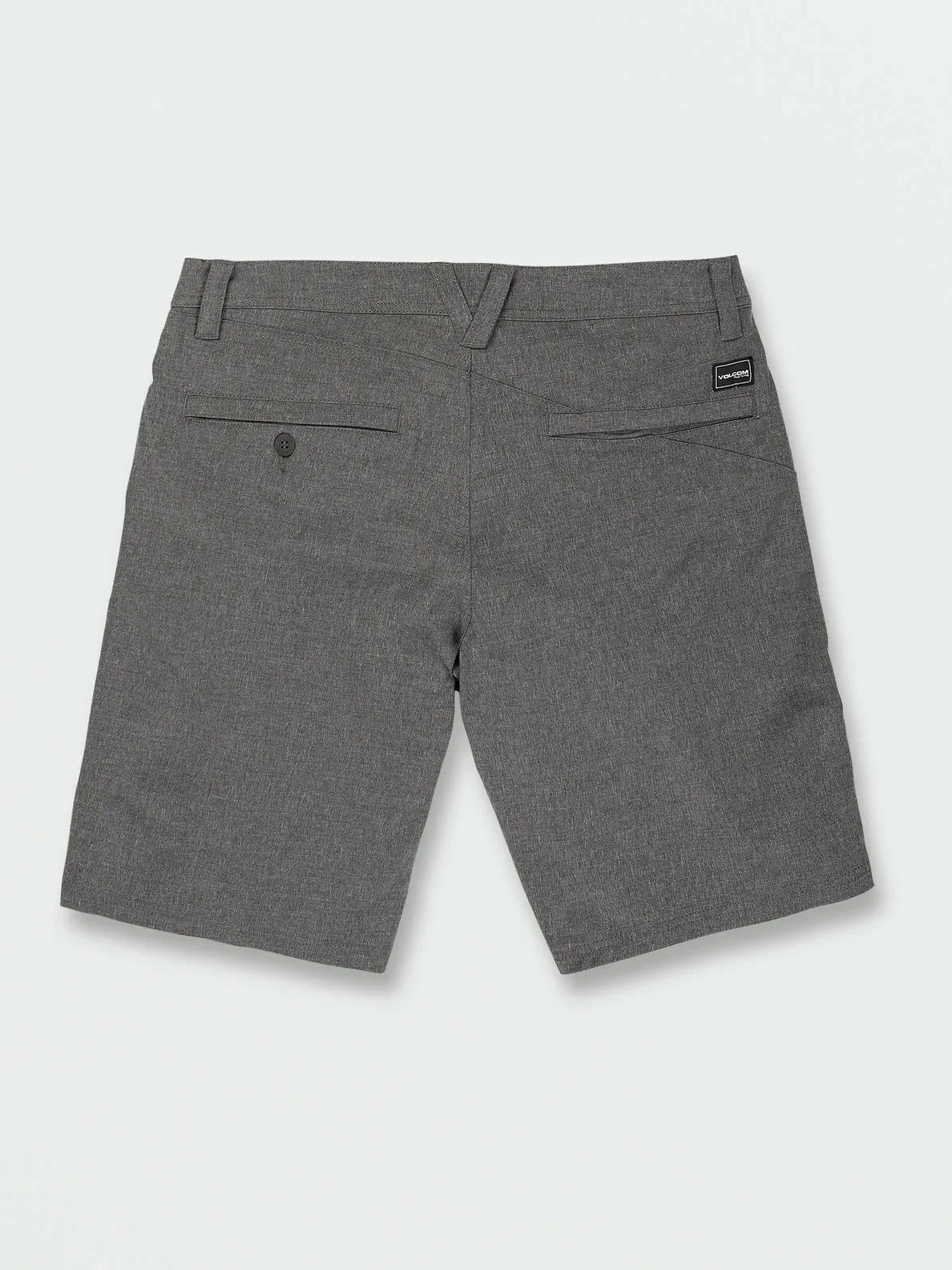 Signature asymmetrical back single welt pocket, high density Volcom brand logo, Heathered body fabrication