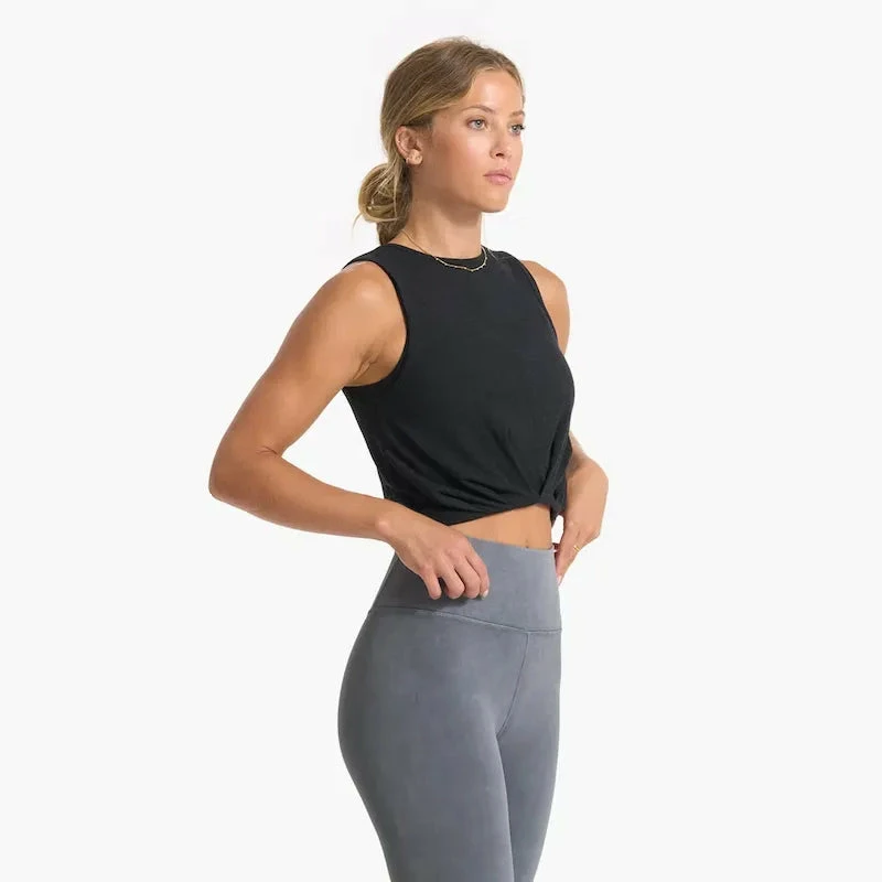 The Cove High Neck Tank features a flattering gathered detail and a cropped cut to elongate your silhouette. Signature stretch rib knit jersey stays ready to perform.